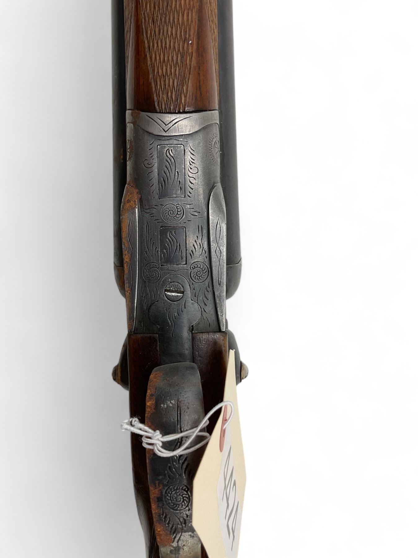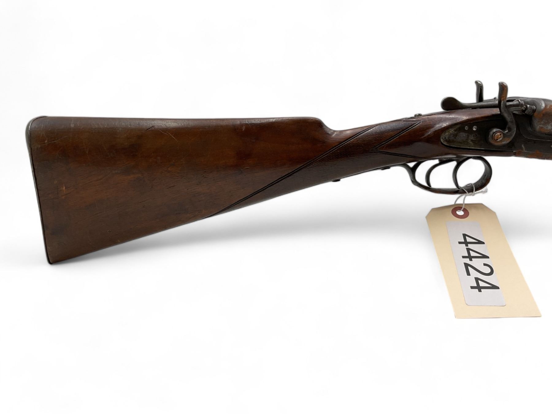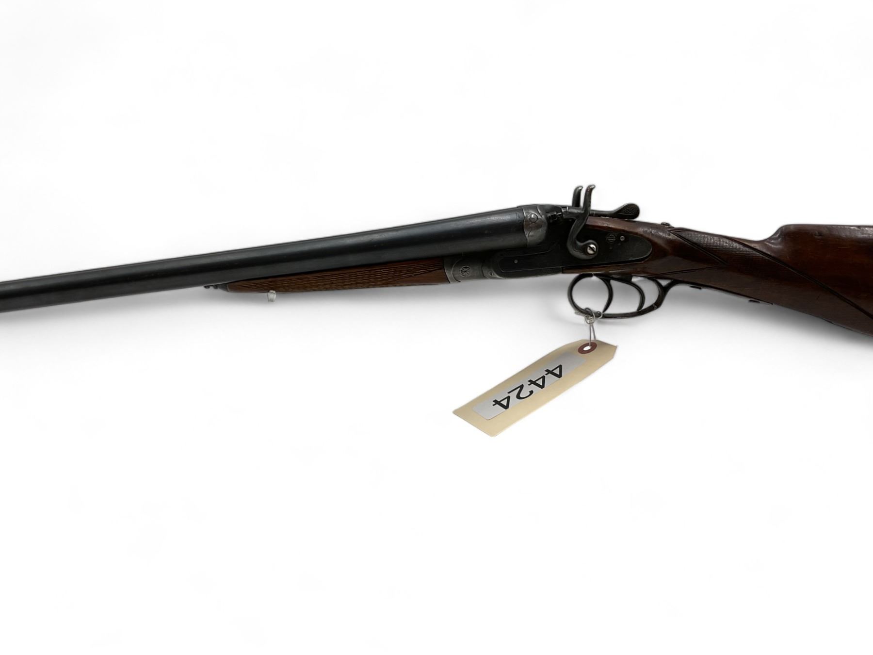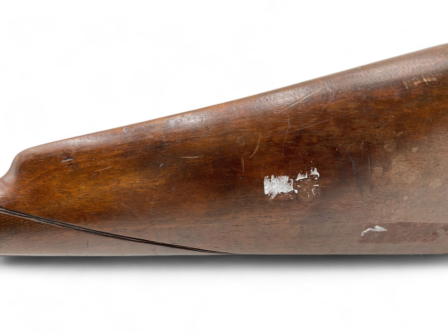 Unknown Side By Side Shotgun 12Ga 30" Barrels Wood Stock. Bead sight, fixed chokes. Exposed double hammers and double triggers. Rear stock appears to have been replaced; replacement stock does not fit correctly. This is a non-restricted firearm.