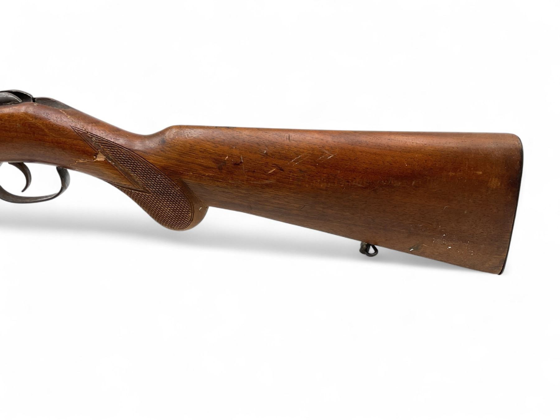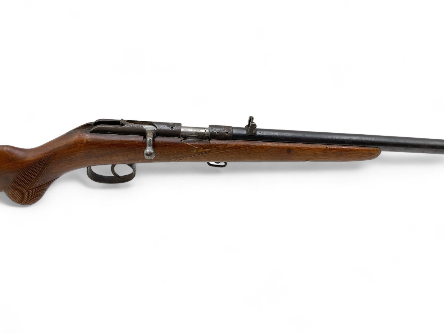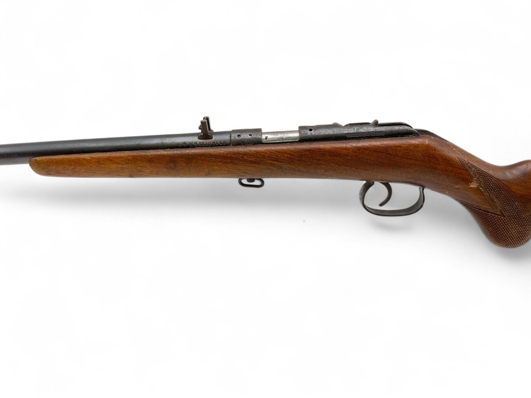 Unknown Single Shot Rifle 22LR 22" Barrel Wood Stock. Factory open sights. Wood stock cracked on both sides. This is a non-restricted firearm.