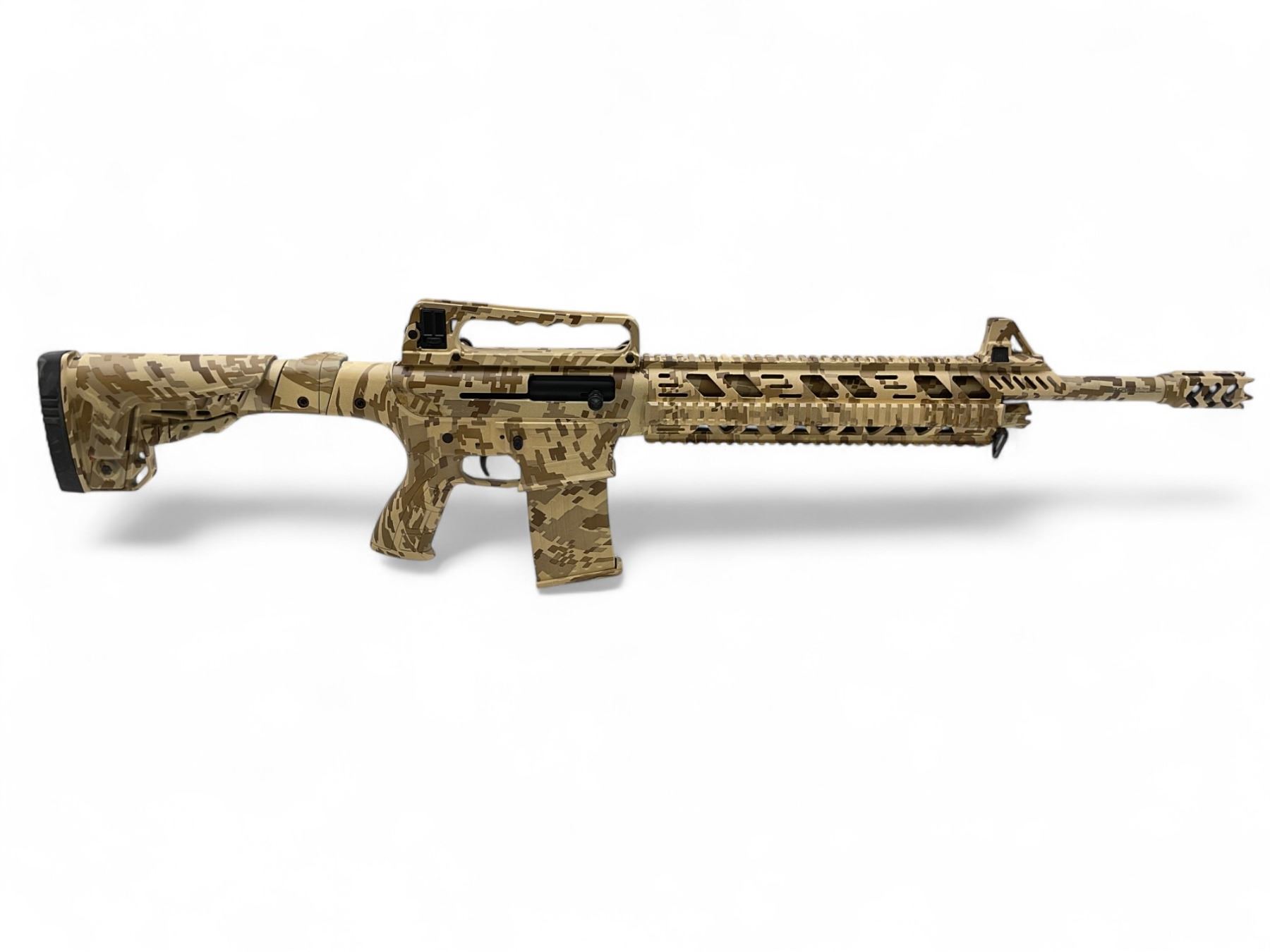 Uzkon TR100 Semi Auto Shotgun 12Ga 3" Chamber 20" Barrel Tan Camo Adjustable Stock, Prohibited. Comes with one detachable magazine.