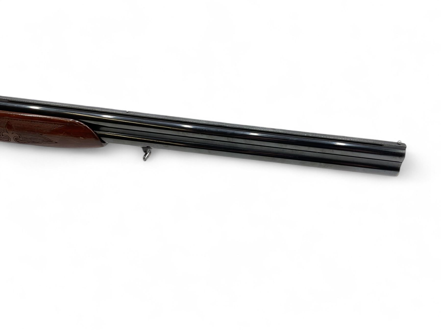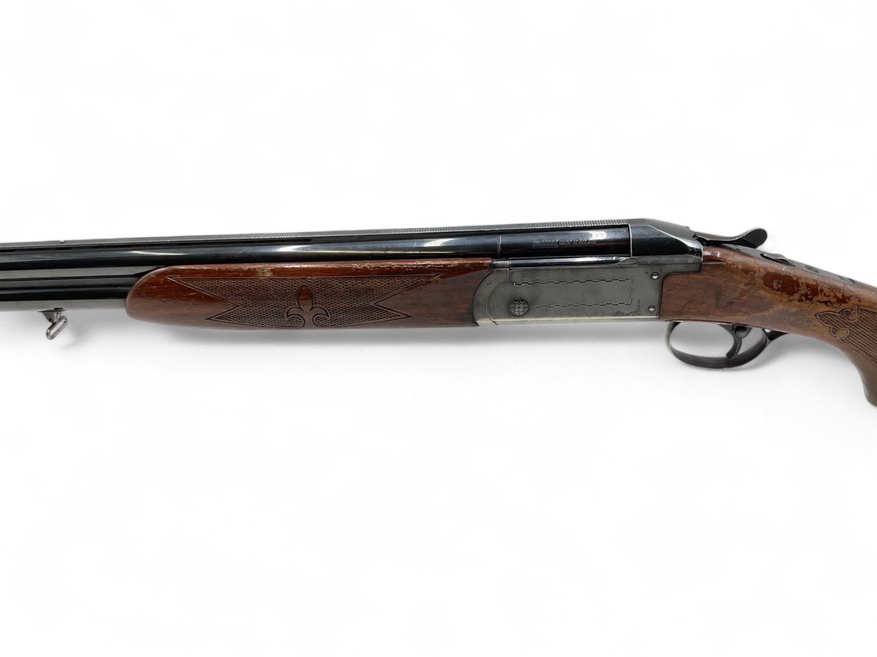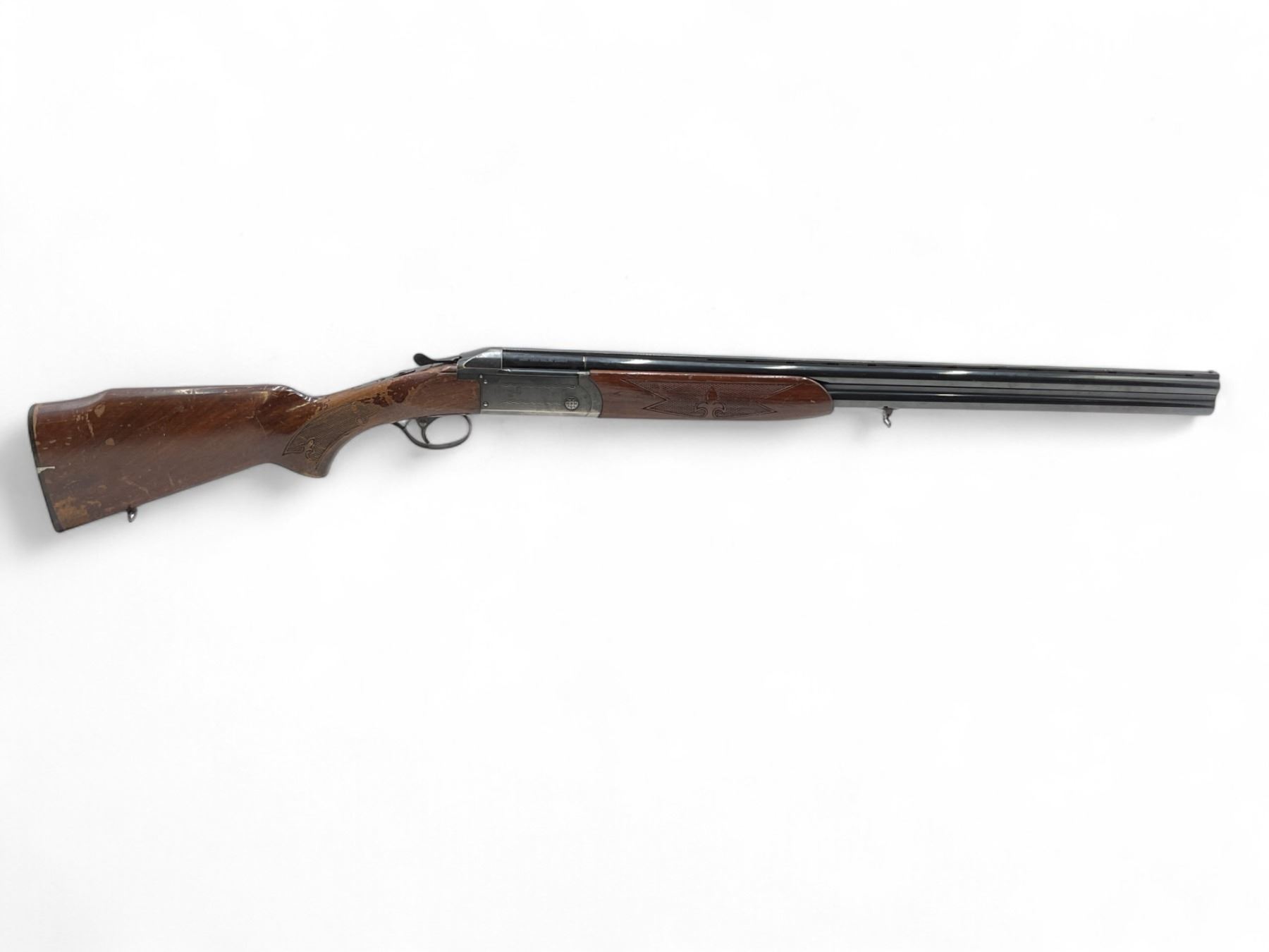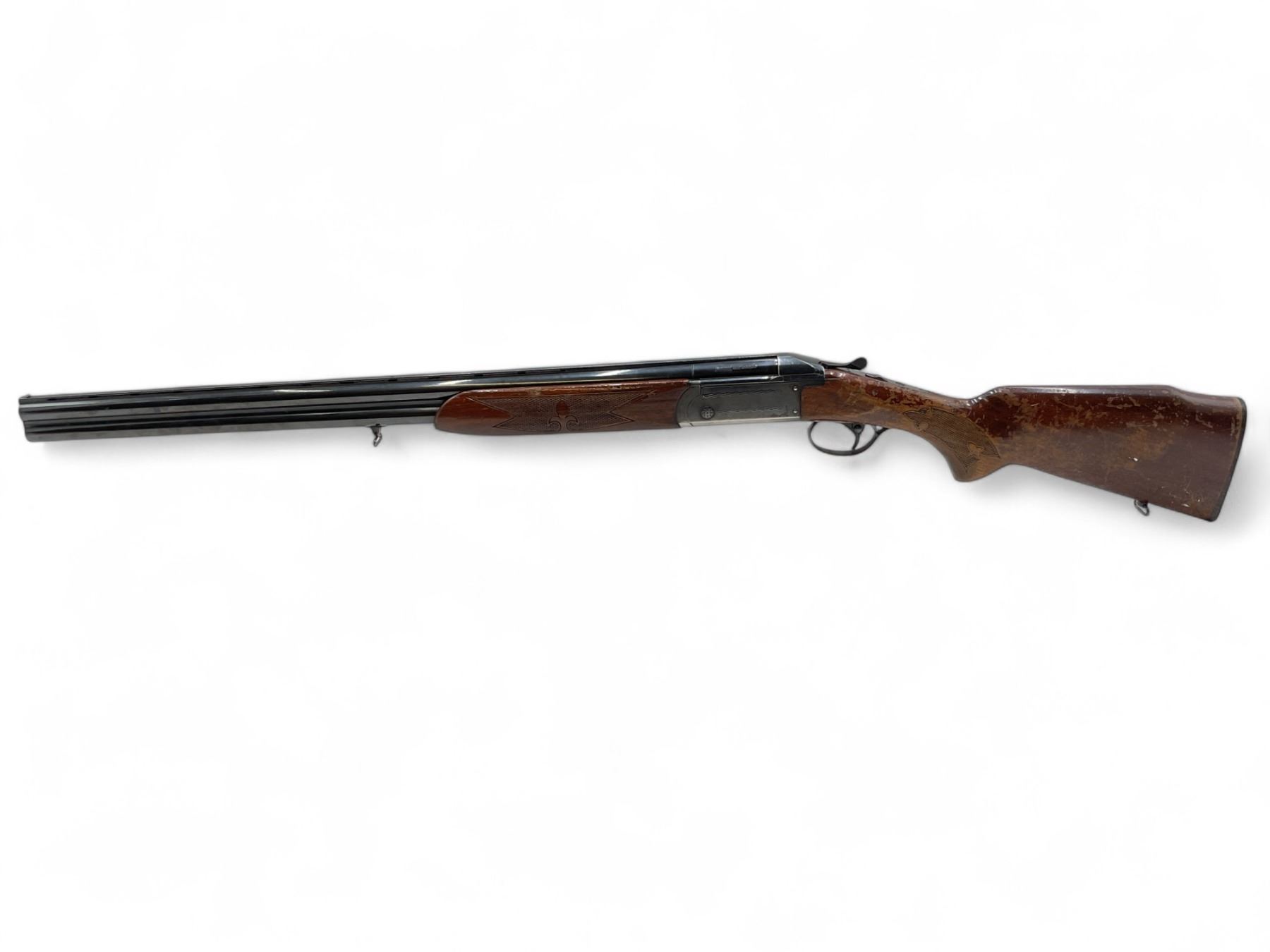 Valmet Over Under Shotgun 12Ga 2.75" Chambers 28" Barrels Wood Stock. Vent rib with dual bead sight; fixed chokes. Rear stock missing screw in tang. This is a non-restricted firearm.