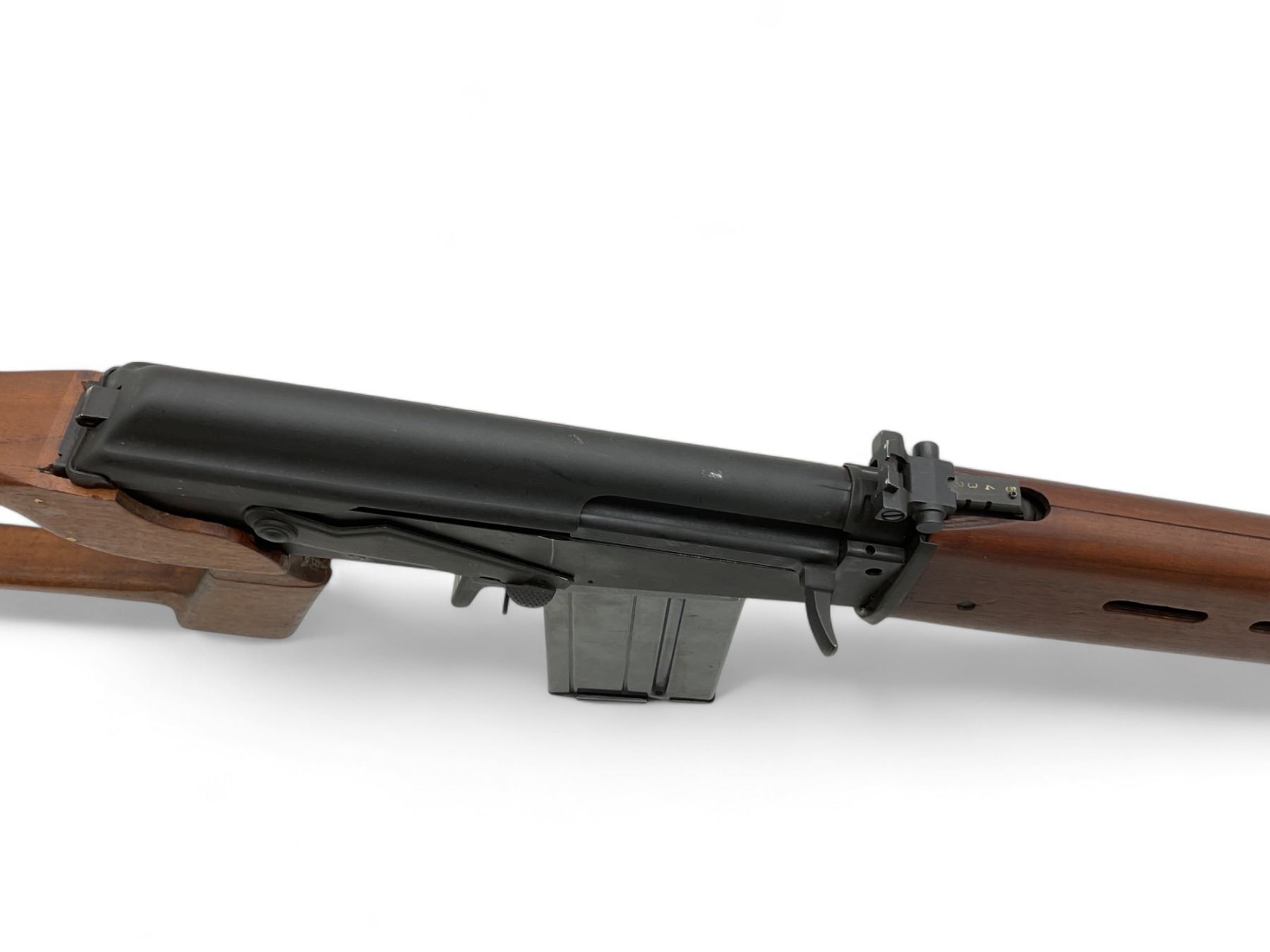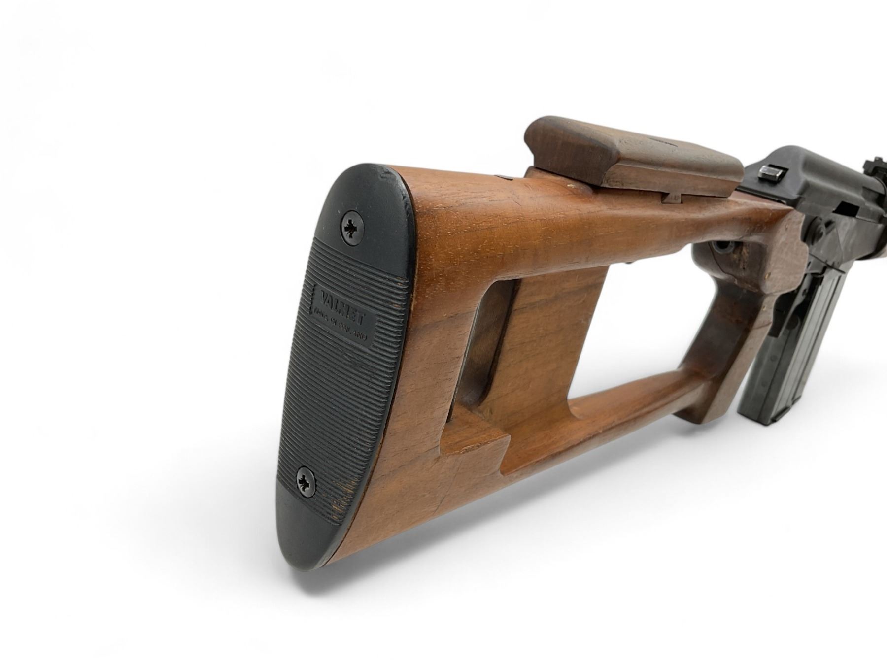 Valmet Semi Auto Rifle 308 Win 21" Barrel Wood Stock. There is a crack in the stock that has been repaired as can be seen in the picture. Factory open sights; comes with one detachable magazine. This is an extremely rare firearm in Canada.