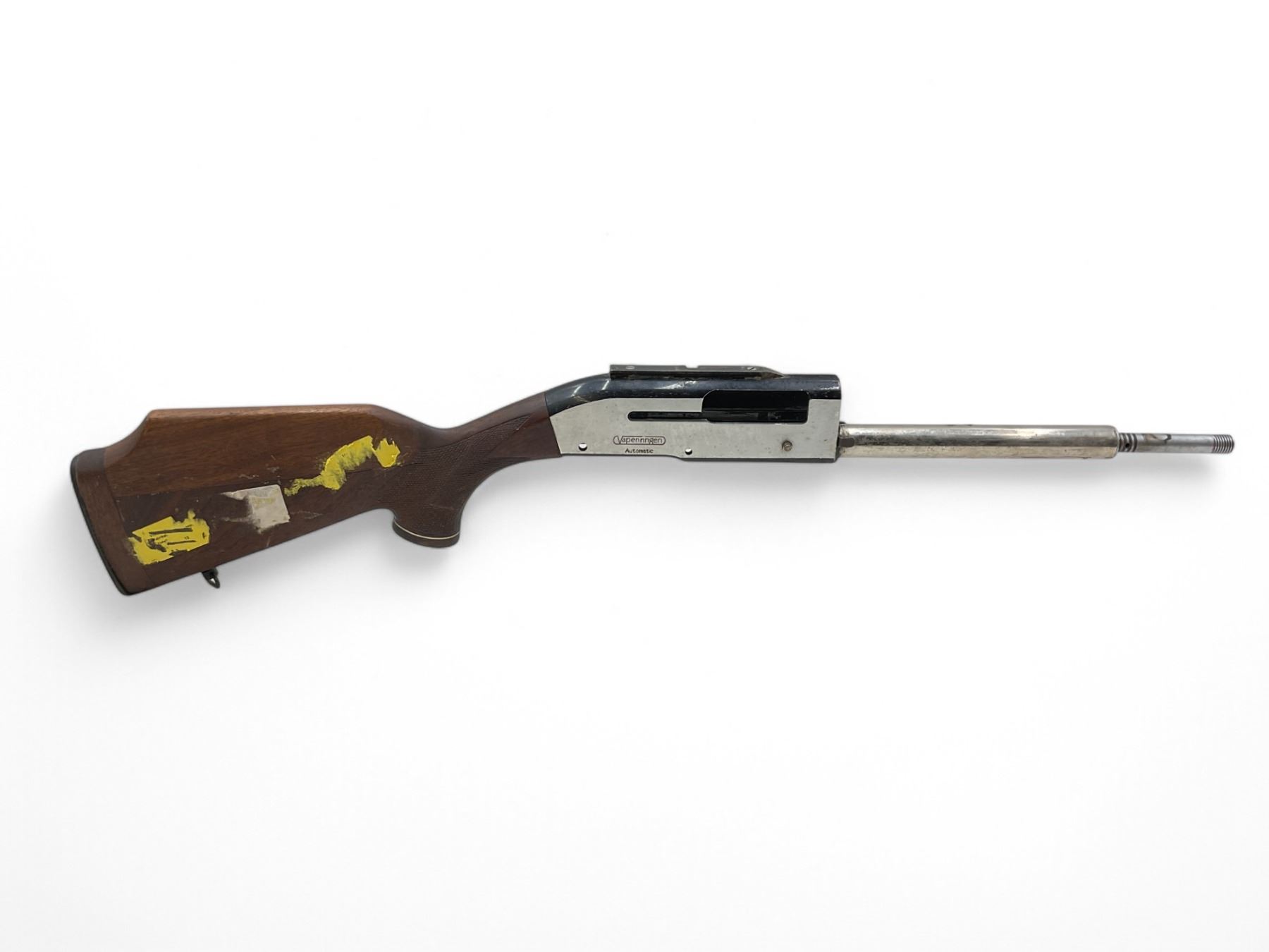 Vapenringen Semi Auto 12Ga Shotgun Receiver And Stock. No bolt assembly and no trigger components. Includes magazine tube. Receiver drilled and tapped with one piece rail installed with adhesive. Plastic butt plate is crooked and does not fit correctly. This is a non-restricted firearm.