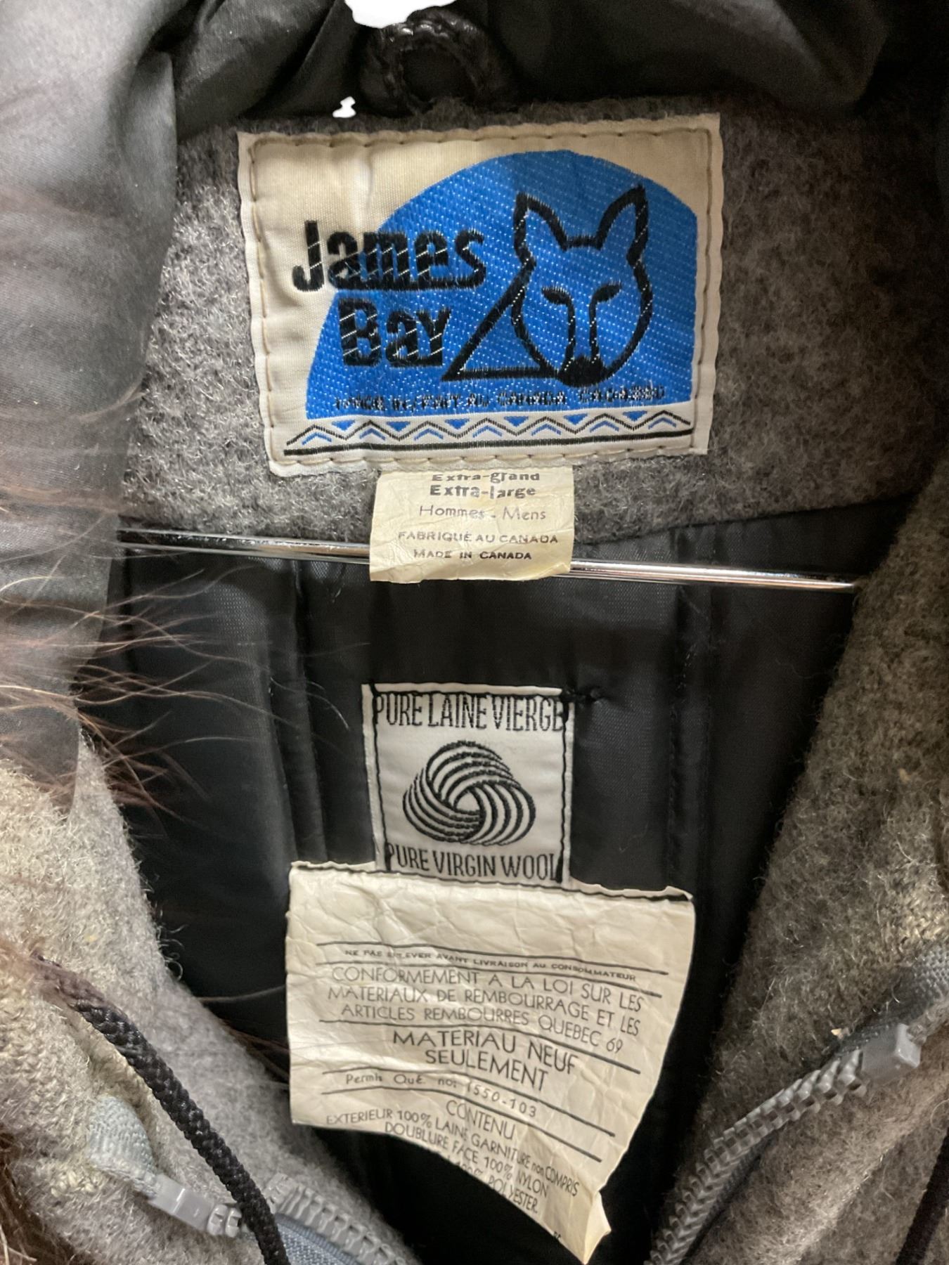 Vintage James Bay 100% Wool and Fur Hooded Parka, Size: Men's X-Large