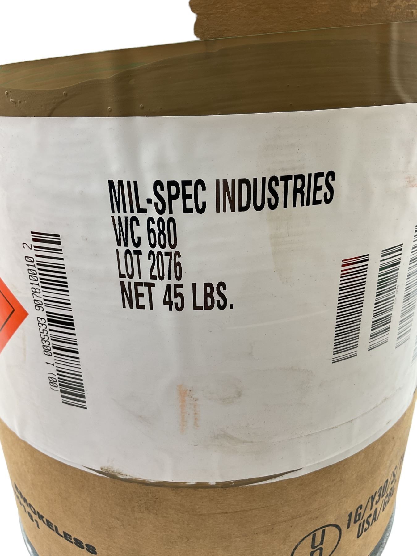 This is a 45lb keg of Mil Spec Industries WC680 powder. It is the military version of WIN 680 and AA680. It is commonly used for 7.62x39, 300 Blackout and many others. You can look up the load data online. This item will need to be picked up in store or shipped on a skid.