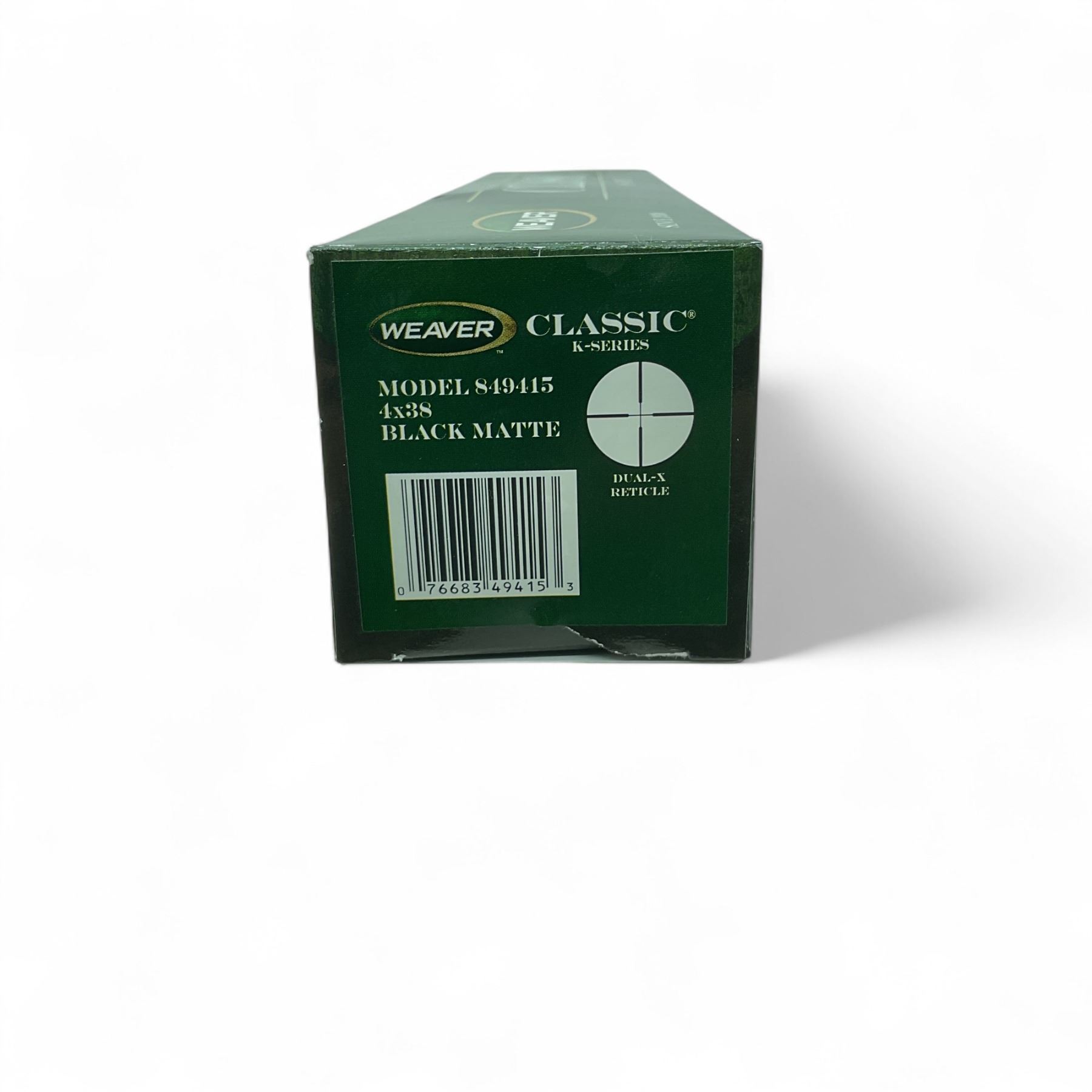 Weaver Classic K-Series 4 X 38 mm Rifle Scope with Dual X Reticle