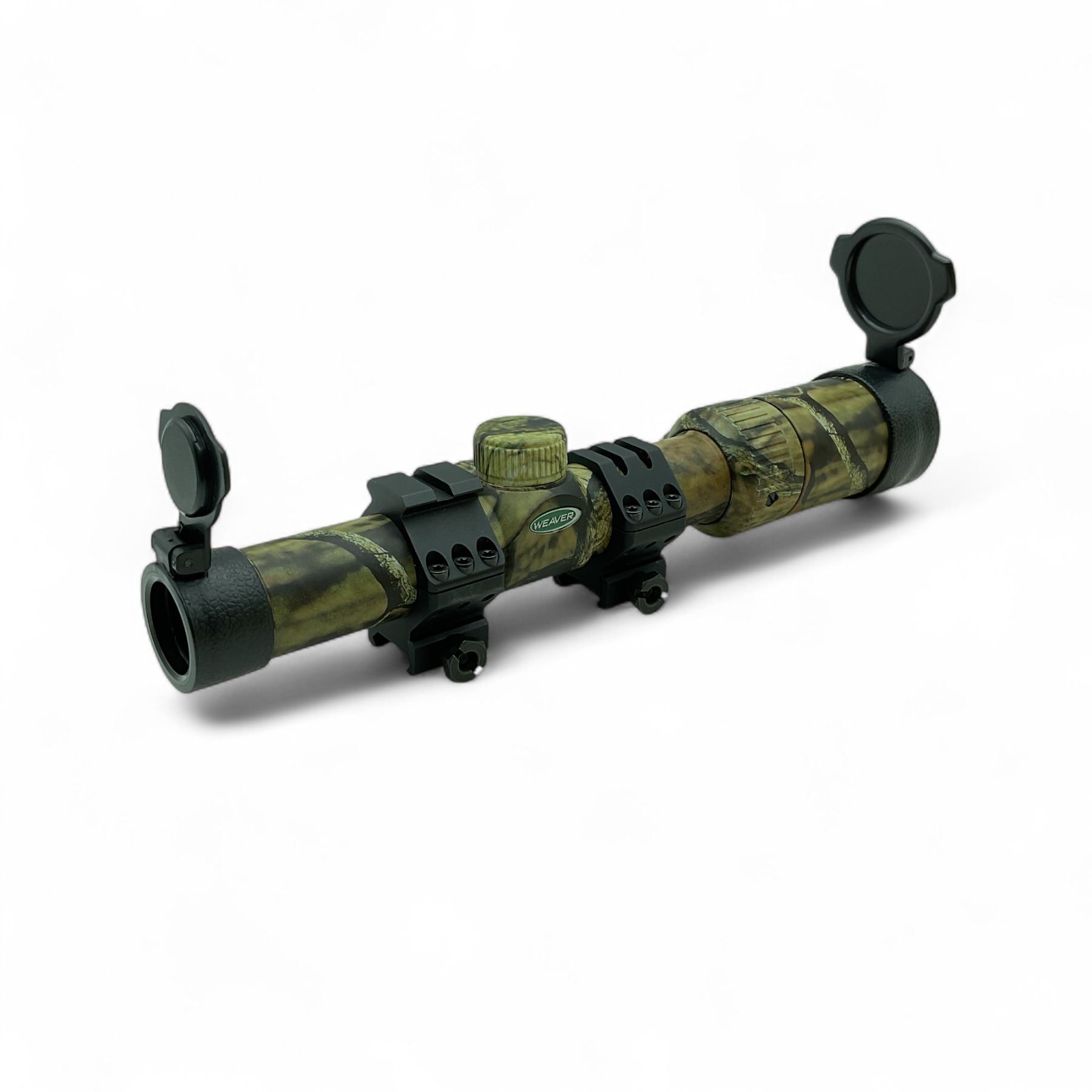 Weaver Kaspa Series 1-4x24mm Scope, Ballistic-X Calibrated for Shotgun/ Muzzleloader Reticle, Mossy Oak Infinity Finish on Rings