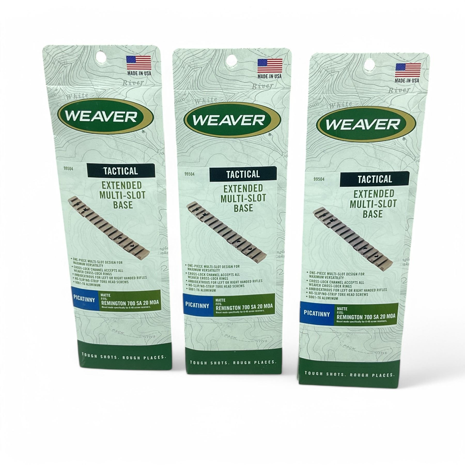 Weaver Tactical Extended Multi-Slot Base, Picatinny, For Remington 700 SA, 20 MOA (6-48 Screw Receivers) X 3 Qty