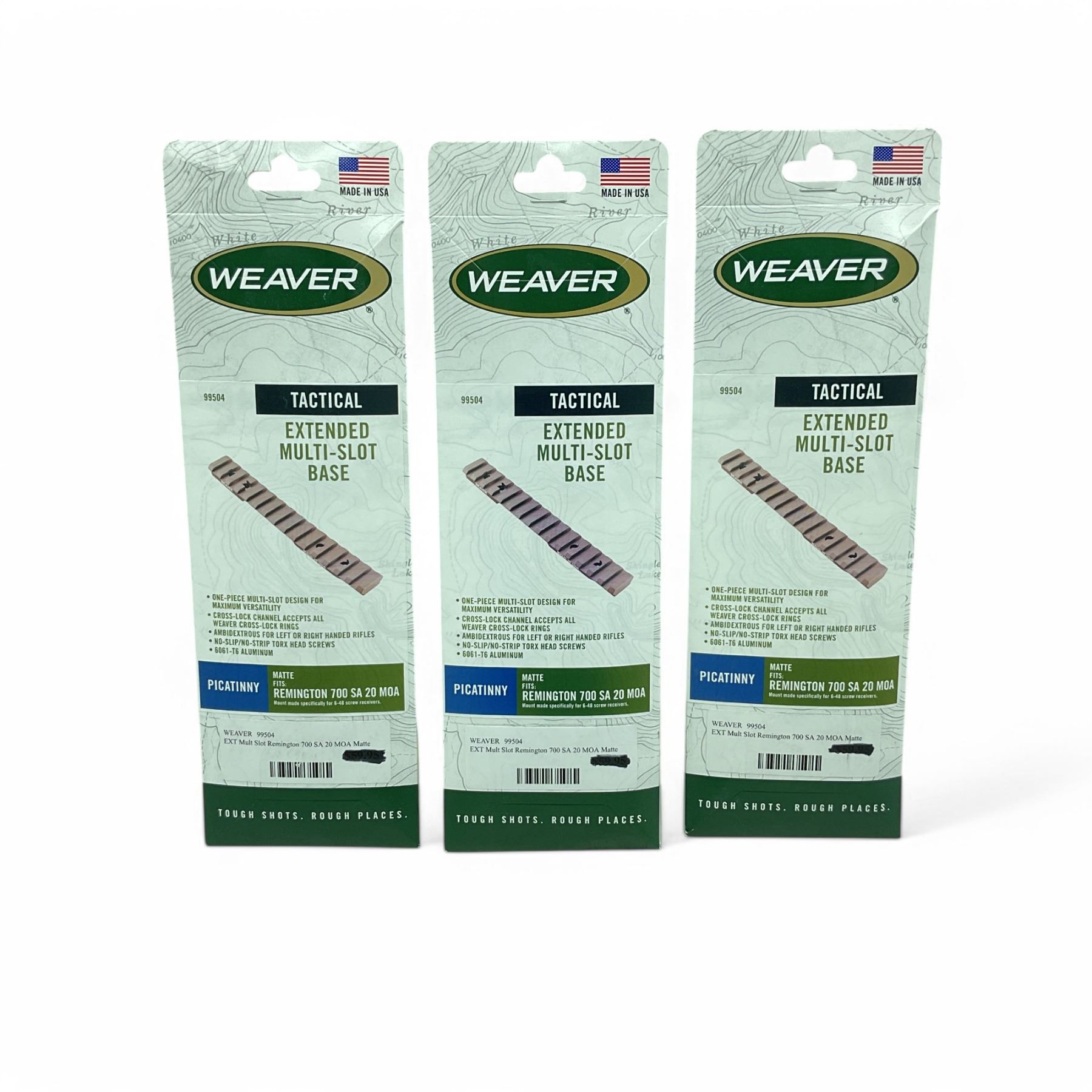Weaver Tactical Extended Multi-Slot Base, Picatinny, For Remington 700 SA, 20 MOA (6-48 Screw Receivers) X 3 Qty
