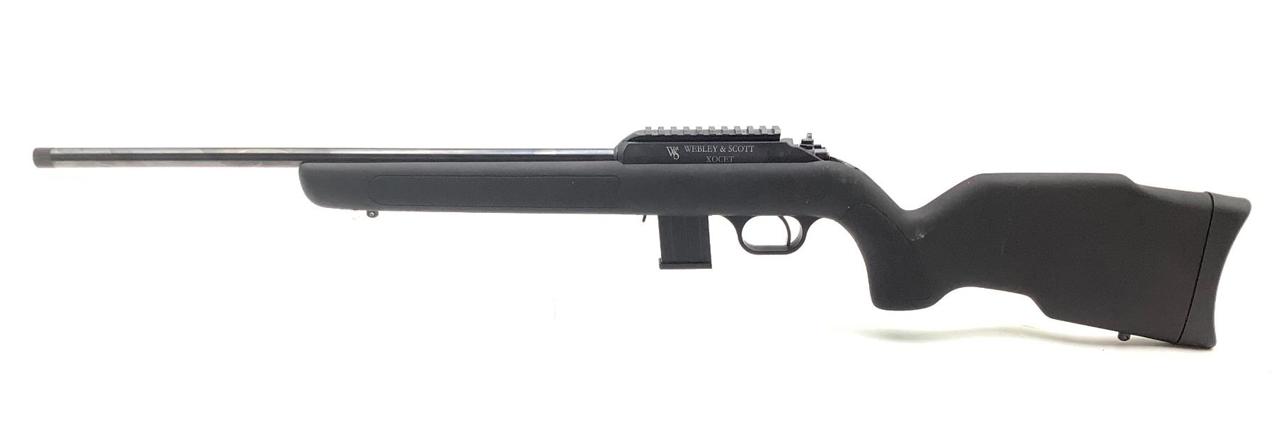 Webley & Scott Standard Bolt Action Rifle 22LR 19" Threaded Barrel Synthetic Stock, New. Includes two magazines. Rail mounted on receiver. This is a non-restricted firearm.