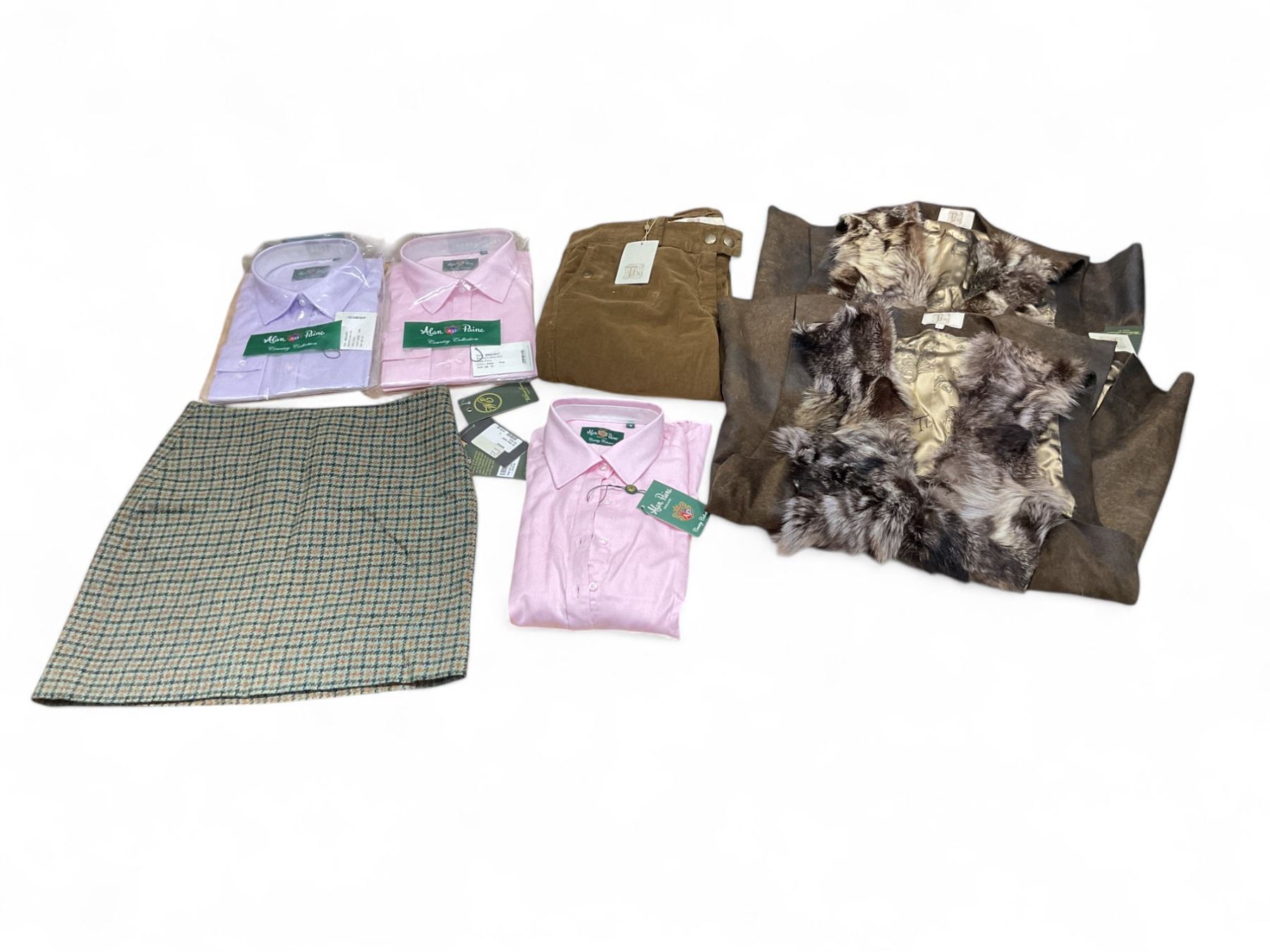 William Evans Vests (Fox Fur Size 42 and 44), Shirts UK 14 and UK 8, Breeches 46, Skirt 8