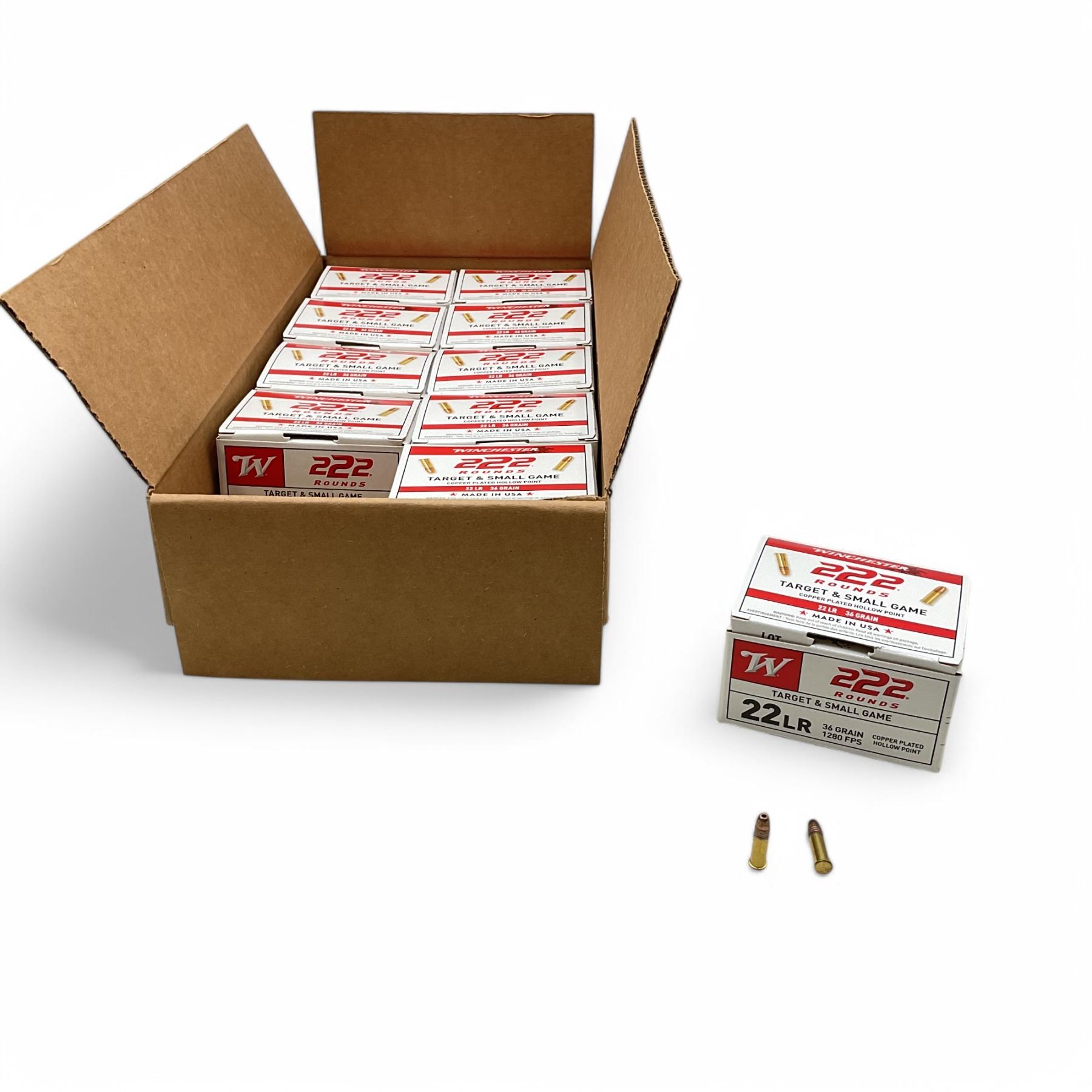 Winchester 22 LR 36 Grain Lubaloy Plated HP Ammunition, 2220 Round Case.