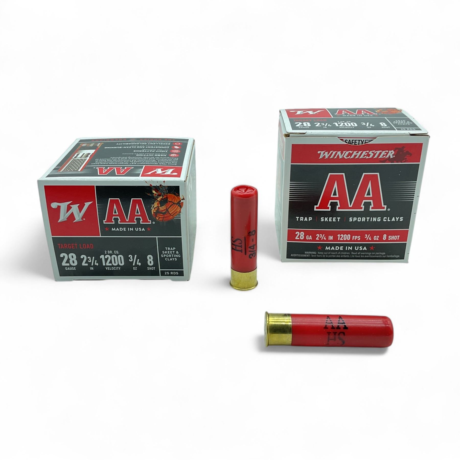 Winchester AA 28 Gauge 2 3/4", #8 Shot Ammunition, 50 Rounds