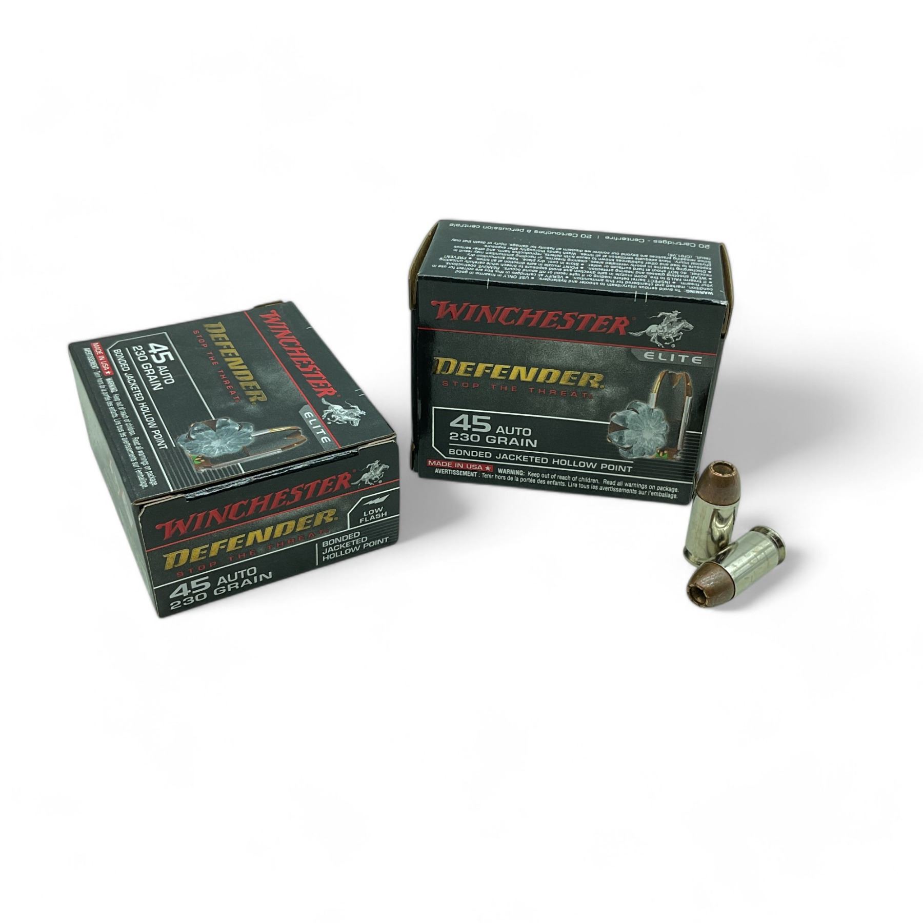 Winchester Defender 45 Auto, 230 Grain Bonded Jacketed Hollow Point Ammunition, 40 Rounds