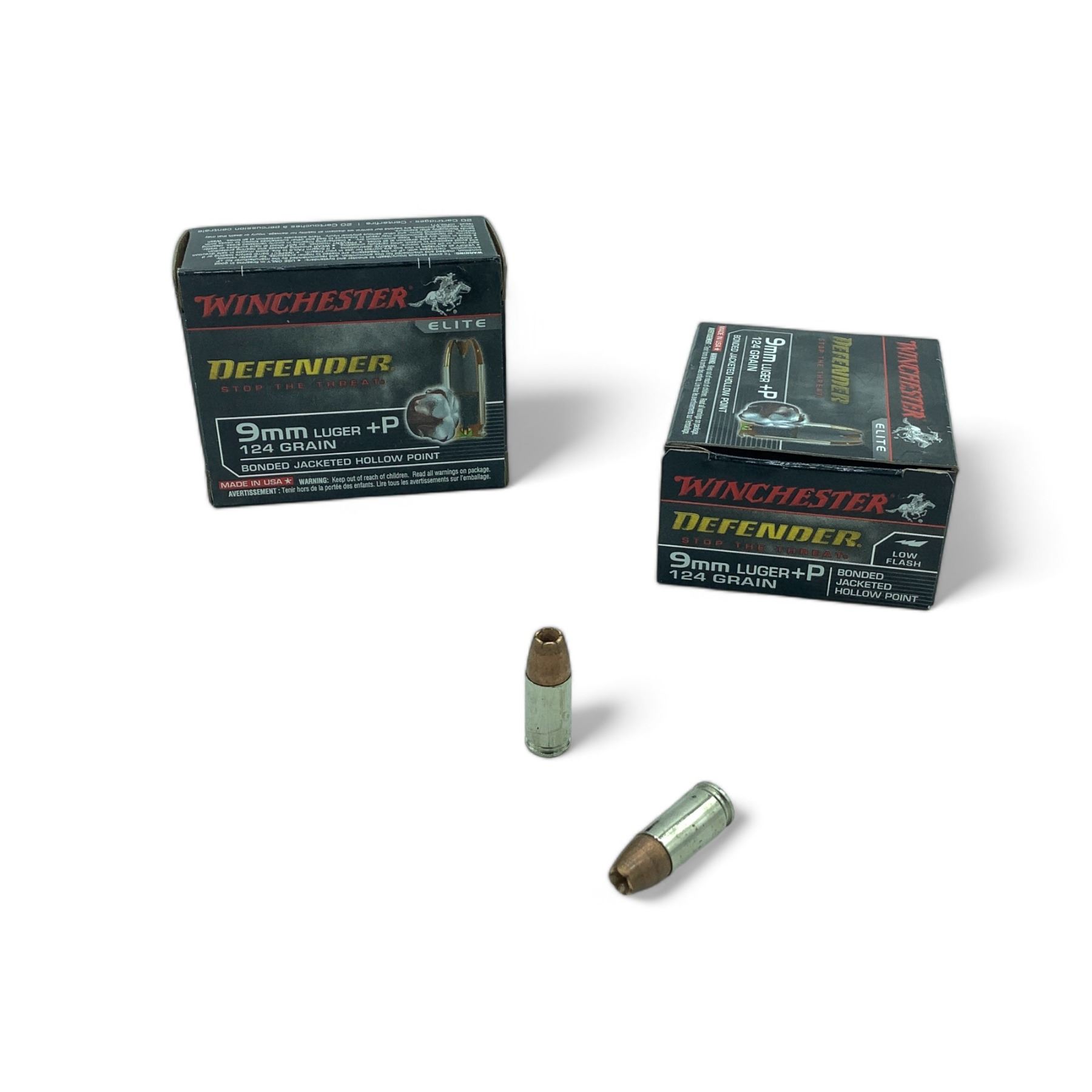 Winchester Defender 9 mm Luger + P 124 Grain BJHP Ammunition, 40 Rounds