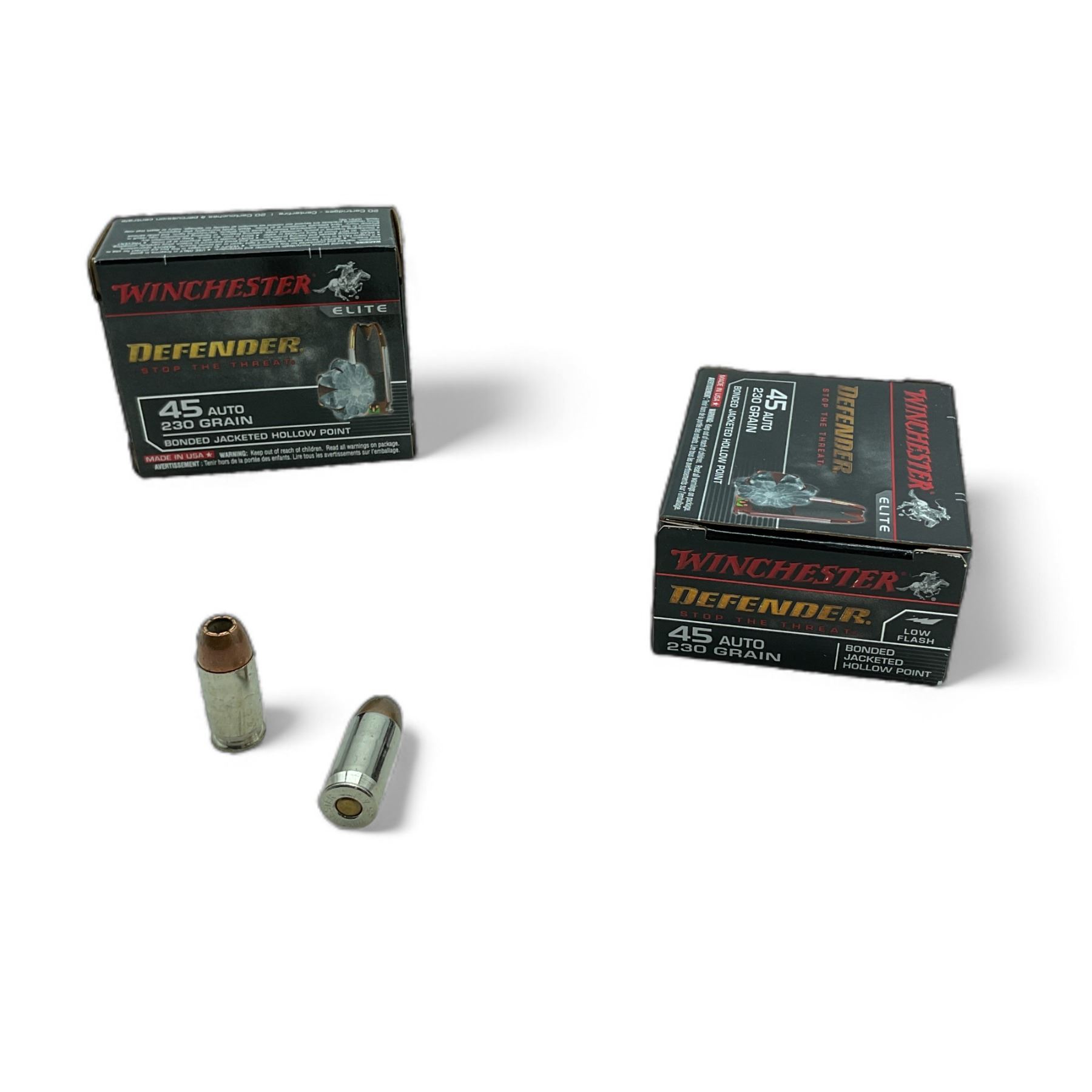 Winchester Elite Defender 45 ACP 230 Grain Bonded JHP Ammunition, 40 Rounds