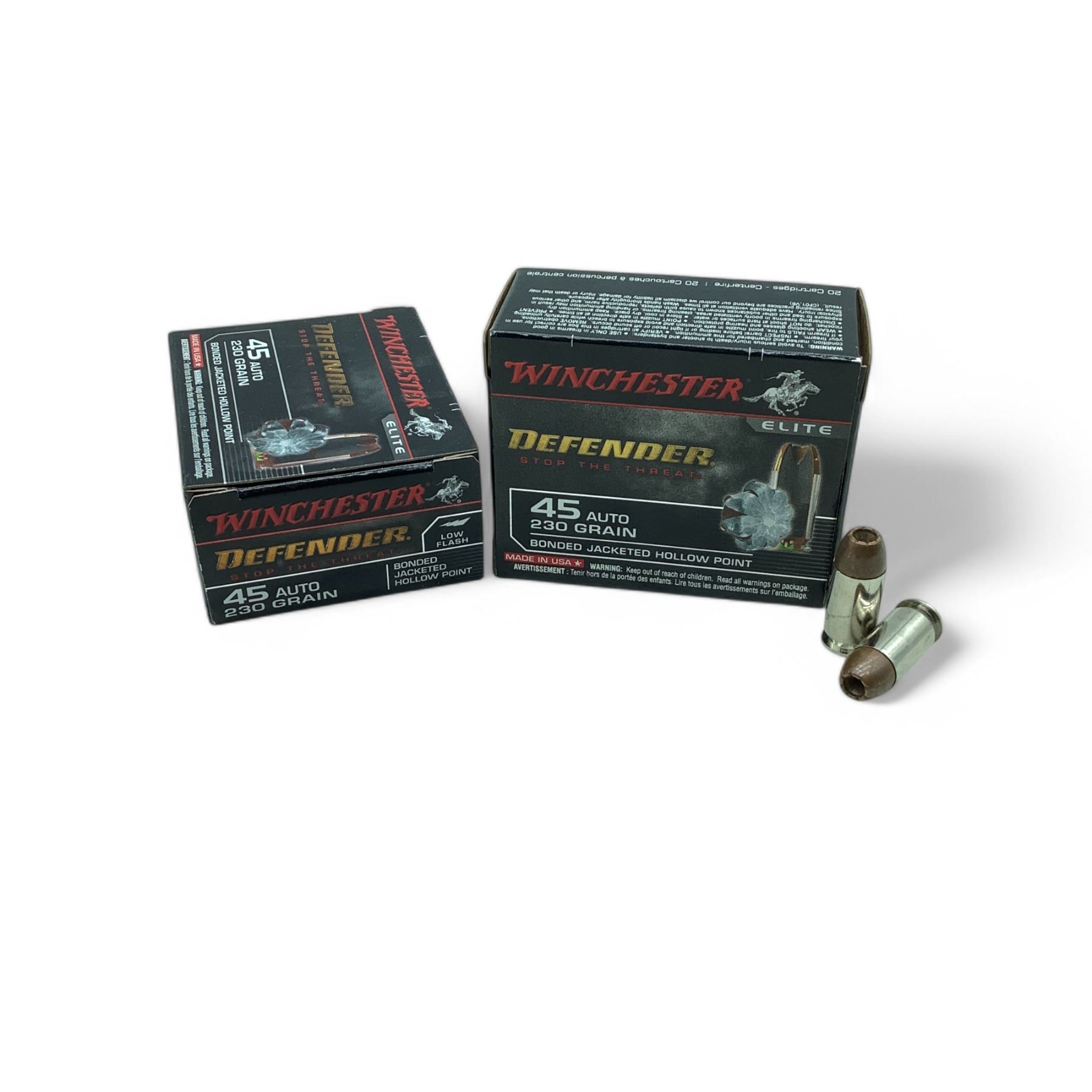 Winchester Elite Defender 45 ACP 230 Grain Bonded JHP Ammunition, 40 Rounds