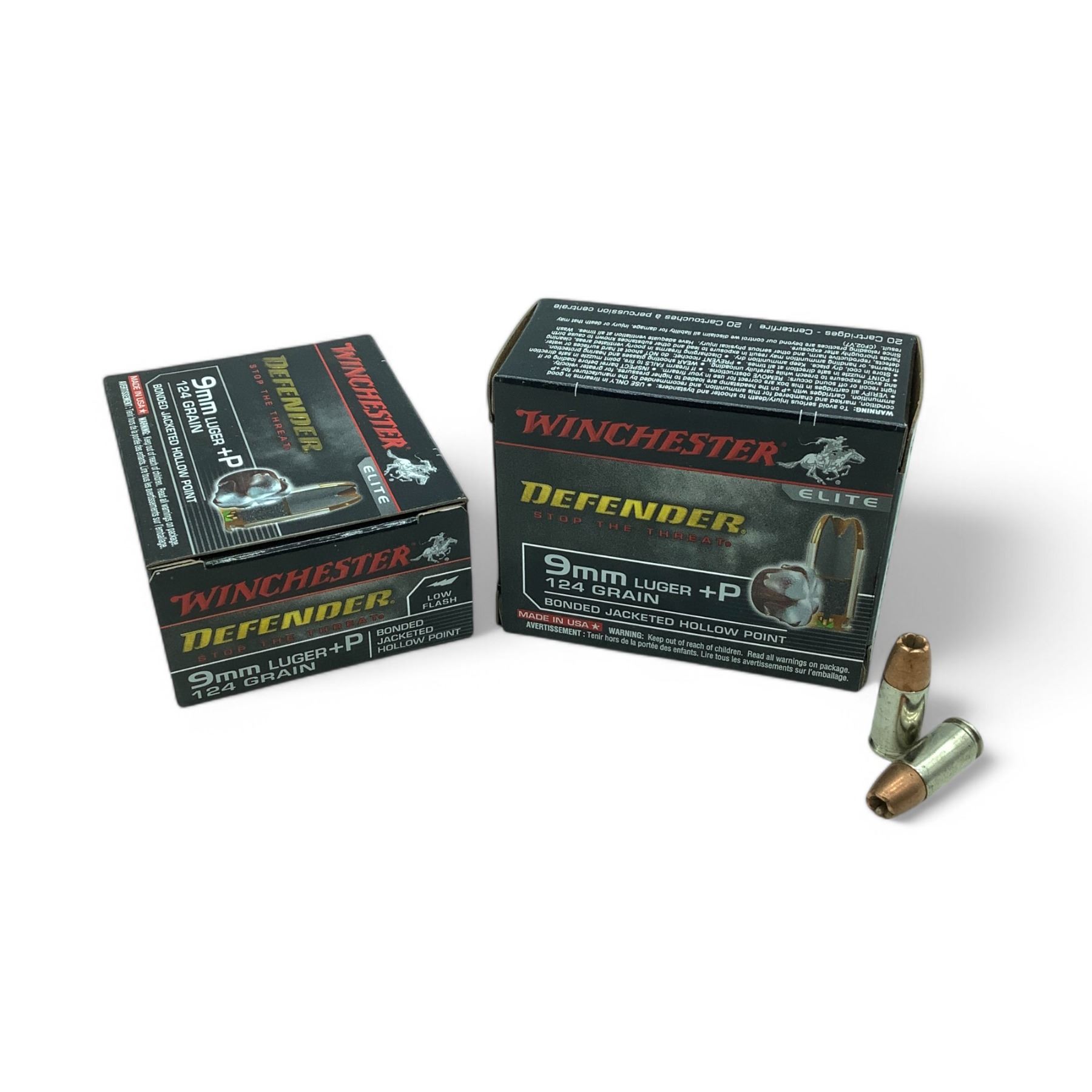 Winchester Elite Defender 9 mm Luger + P 124 Grain Bonded JHP Ammunition, 40 Rounds