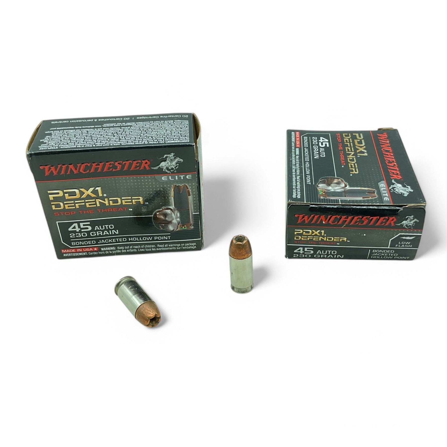 Winchester Elite PDX1 Defender 45 ACP 230 Grain Bonded JHP Ammunition, 40 Rounds