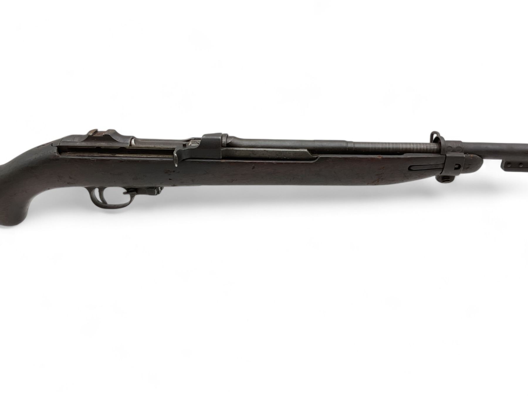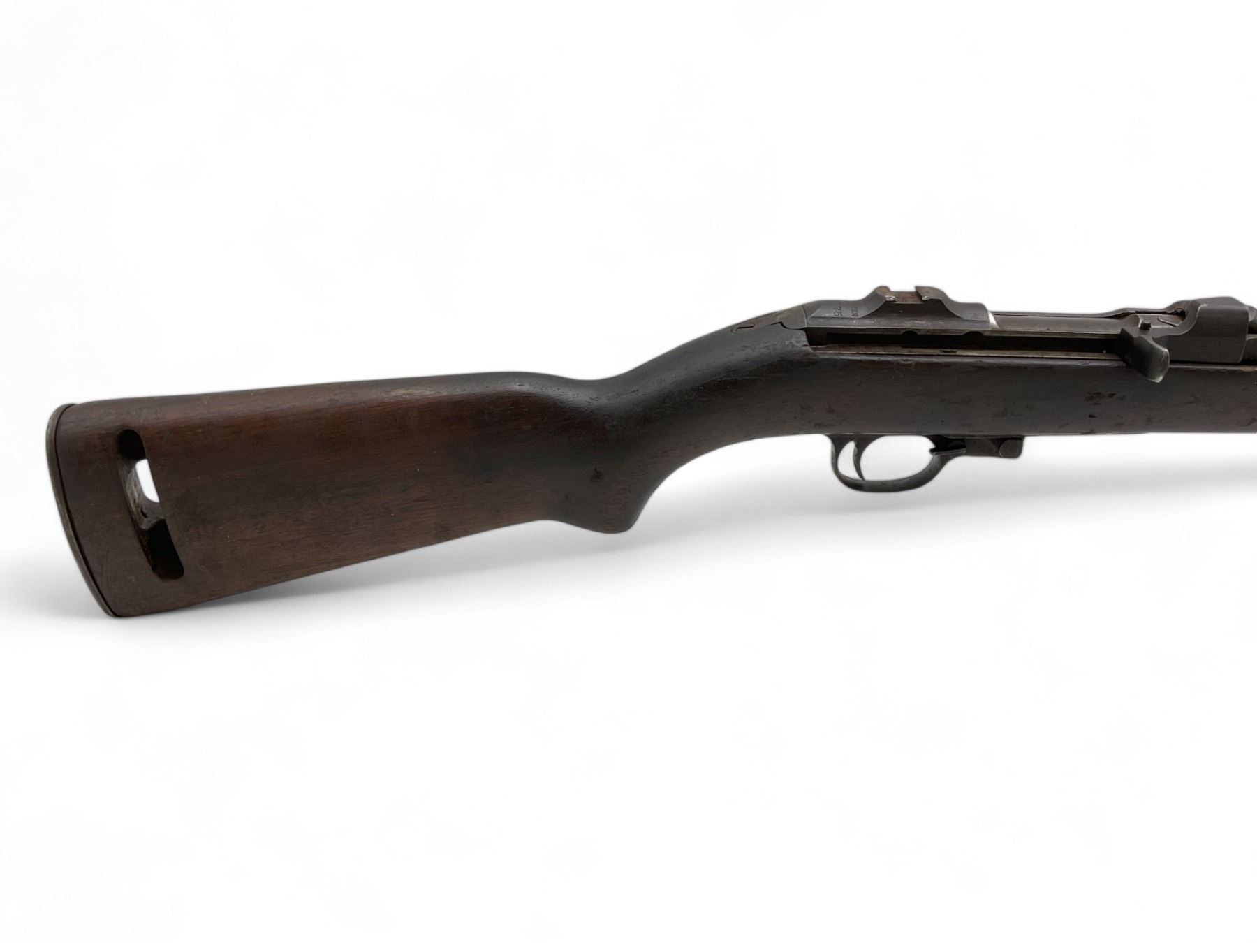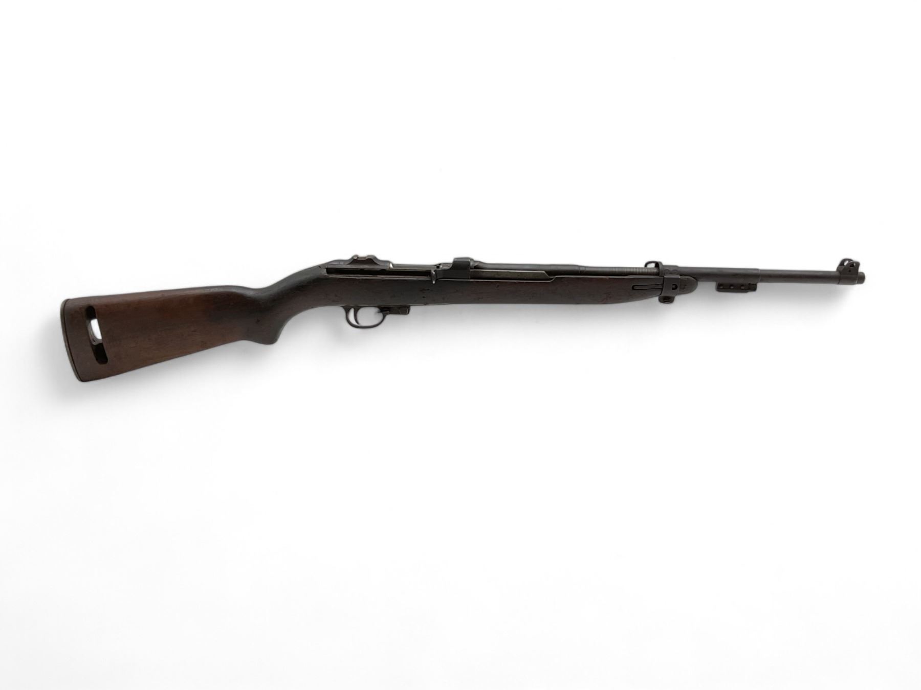 Winchester M1 Carbine Semi Auto Rifle .30 Carbine 18" Barrel Wood Stock, Restricted. No magazine included. Missing upper handguard; no rear sight present. May be missing other parts. Serial number 5551775. This is a restricted firearm.