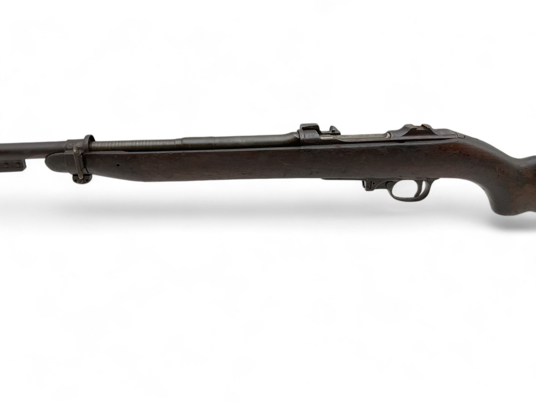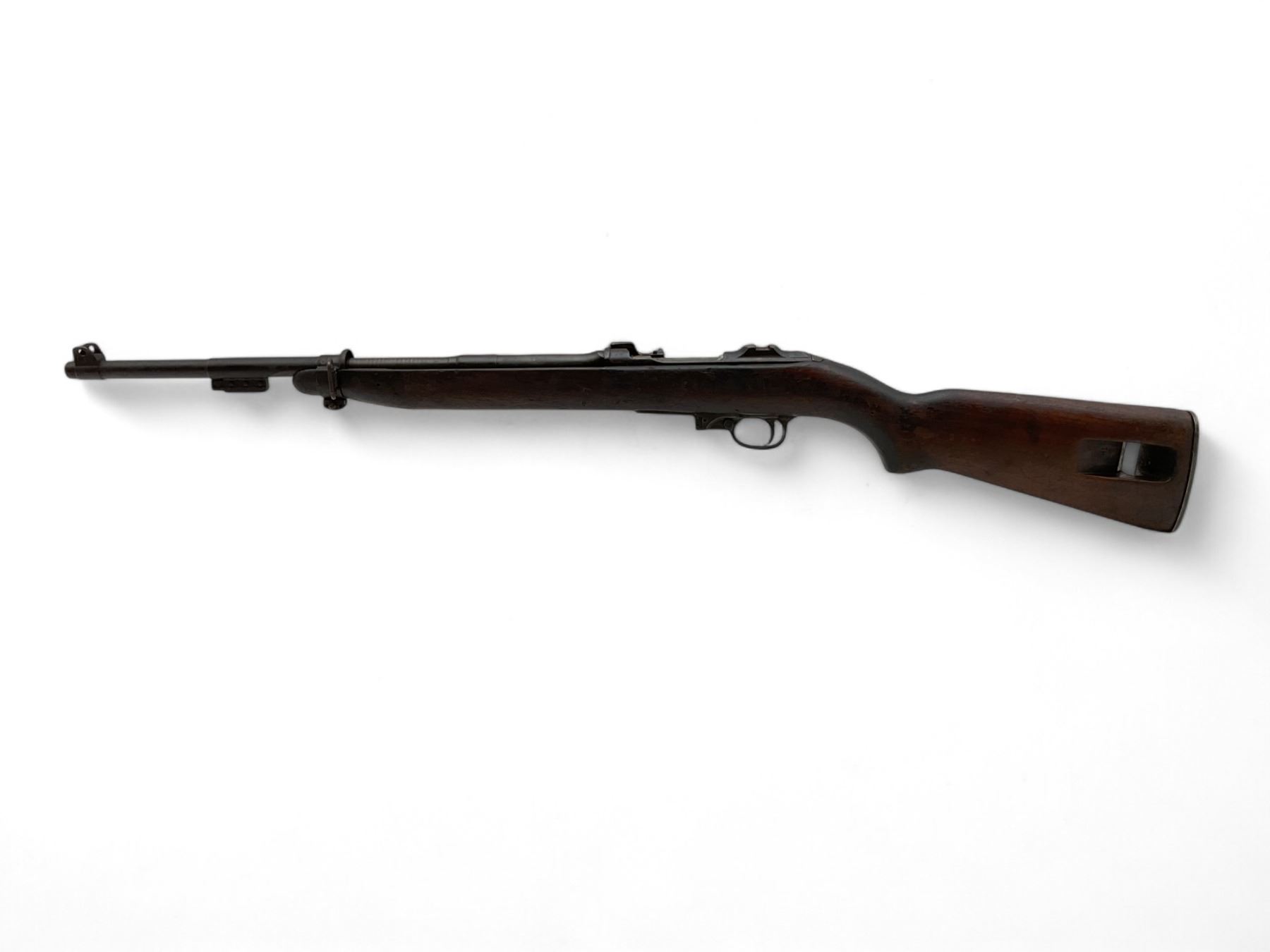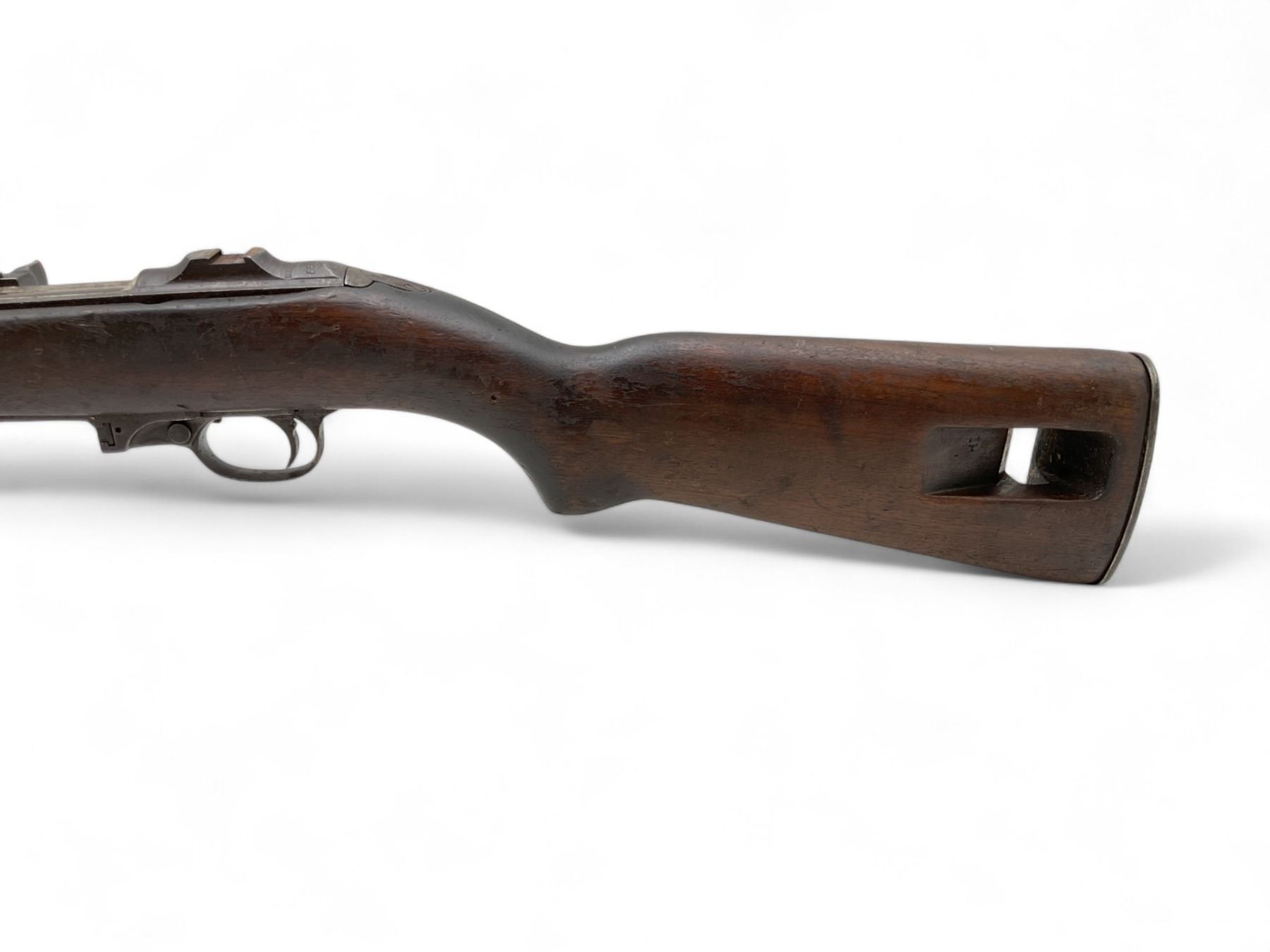 Winchester M1 Carbine Semi Auto Rifle .30 Carbine 18" Barrel Wood Stock, Restricted. No magazine included. Missing upper handguard; no rear sight present. May be missing other parts. Serial number 5551775. This is a restricted firearm.