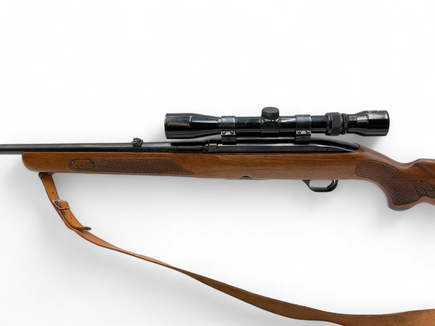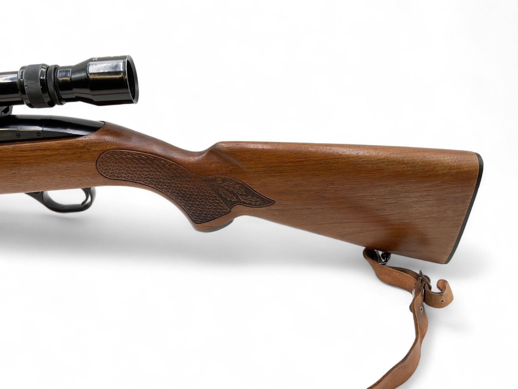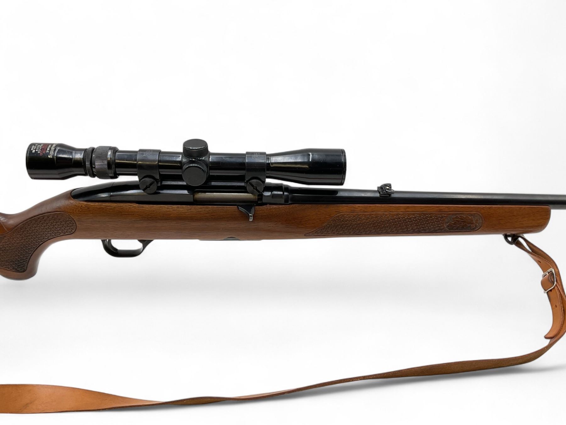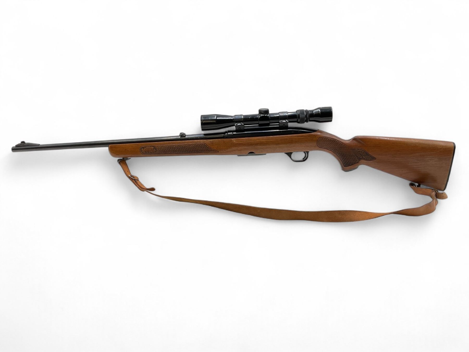 Winchester Model 100 Semi Auto Rifle .308 Win 22" Barrel Wood Stock With 3-9X32 Scope. Comes with one detachable magazine. Ramp front sight; adjustable rear sight. Receiver drilled and tapped with one piece rail installed. Nikko Stirling 3-9X32 scope; also includes leather sling. This is a non-restricted firearm.