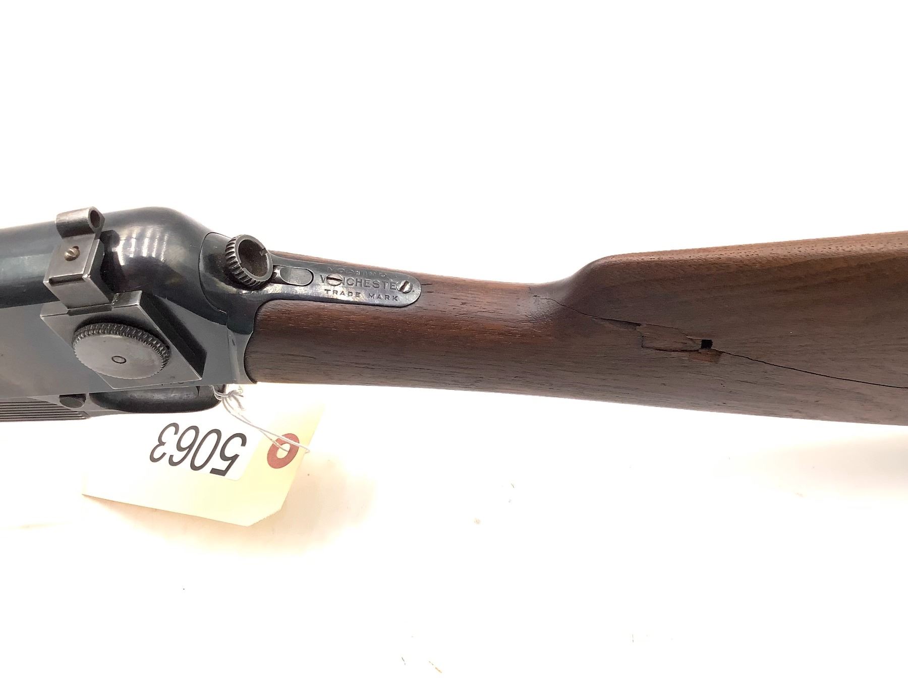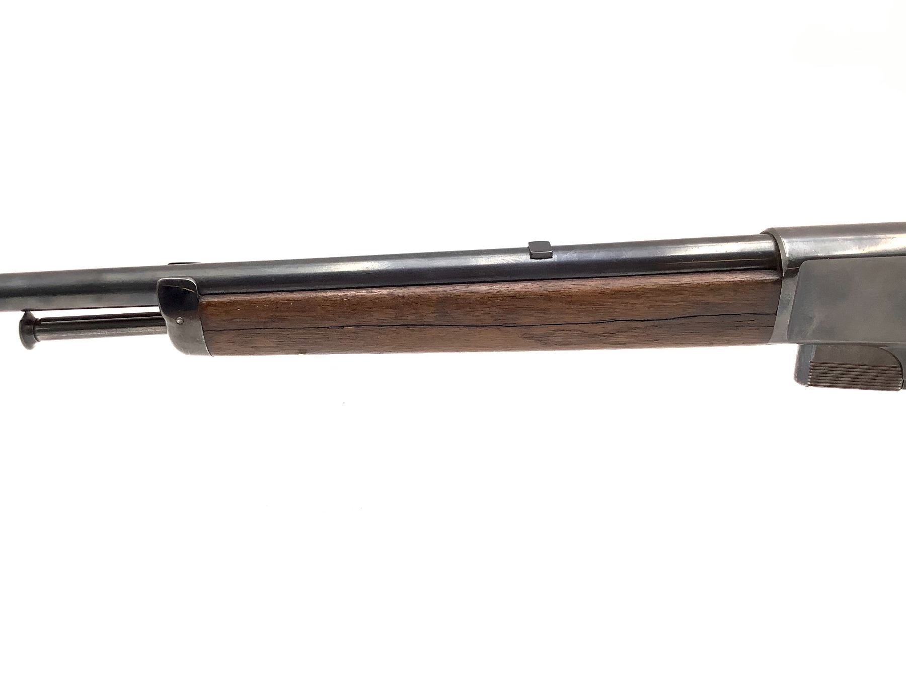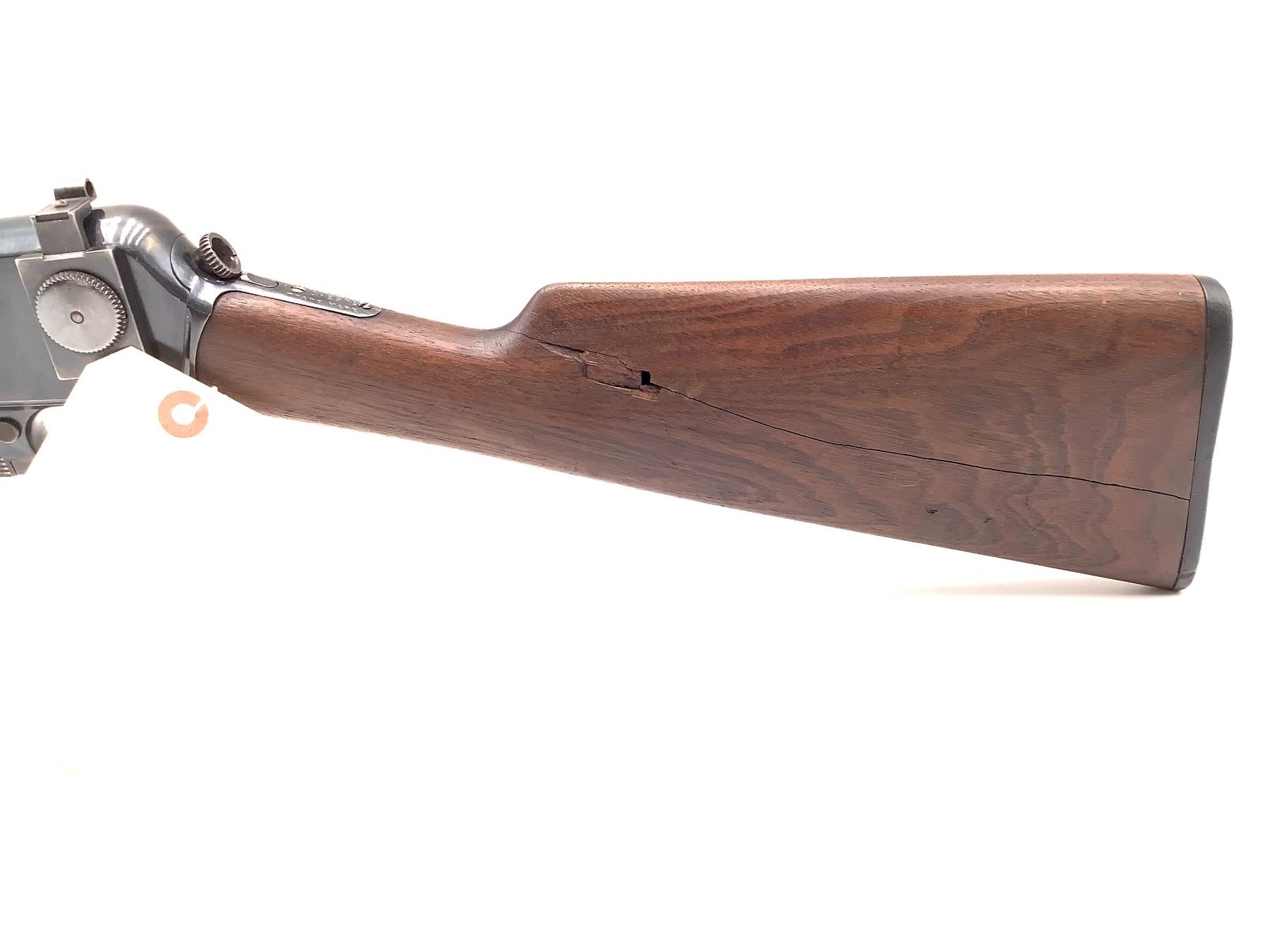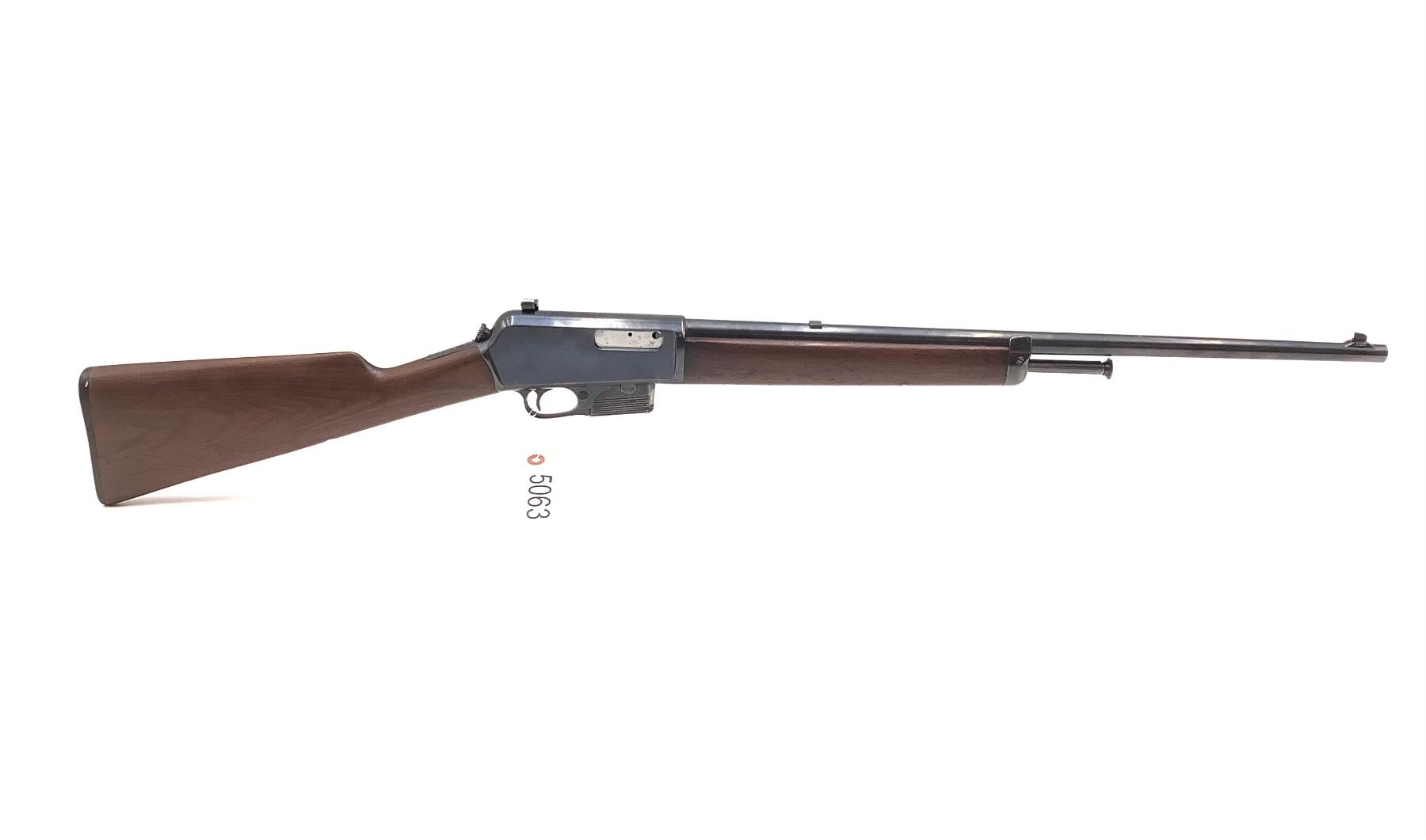 Winchester Model 1905 Semi Auto Rifle .32 Cal 22" Barrel Wood Stock. Detachable magazine. Rear peep sight, factory front sight. Wood forend and rear stock are cracked. Rear stock has an additional hole drilled in base. Serial number 1760. This is a non-restricted firearm.