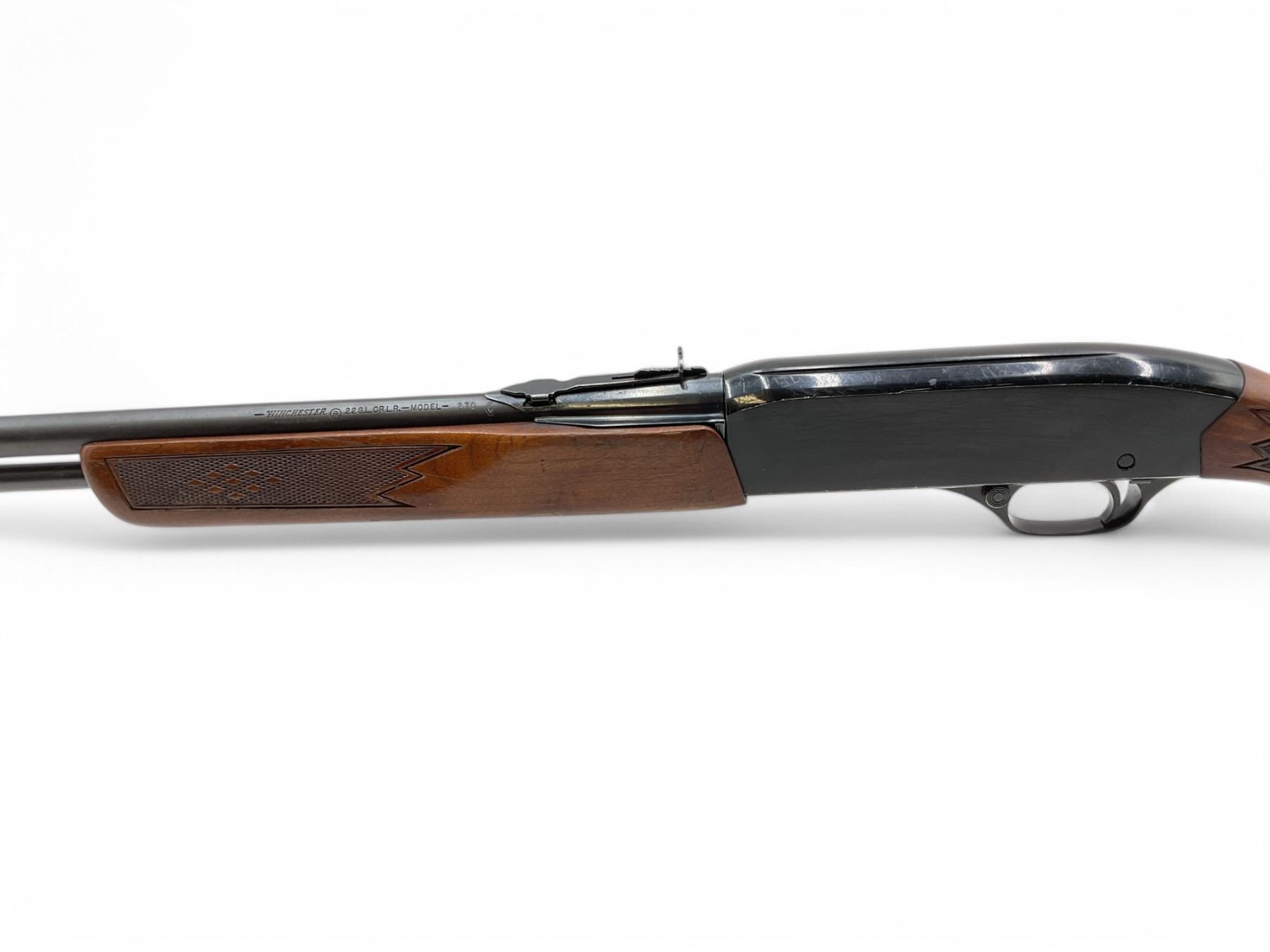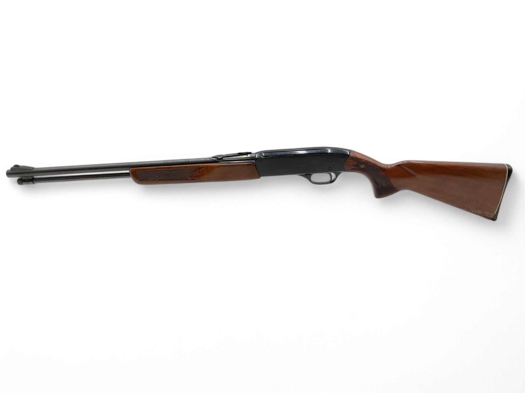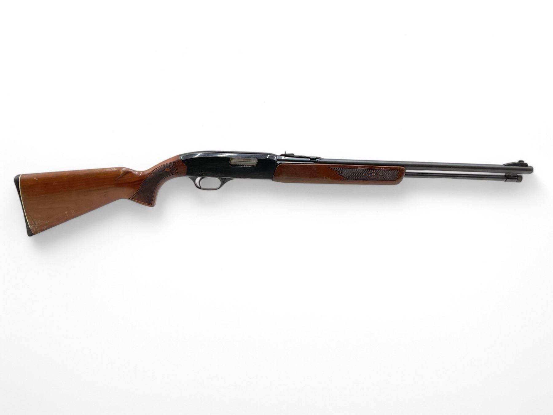 Winchester Model 270 Pump Action Rifle .22S/L/LR 21" Barrel Wood Stock. Ramp front sight, adjustable rear sight. Tubular magazine. Rear stock cracked at bottom. This is a non-restricted firearm.