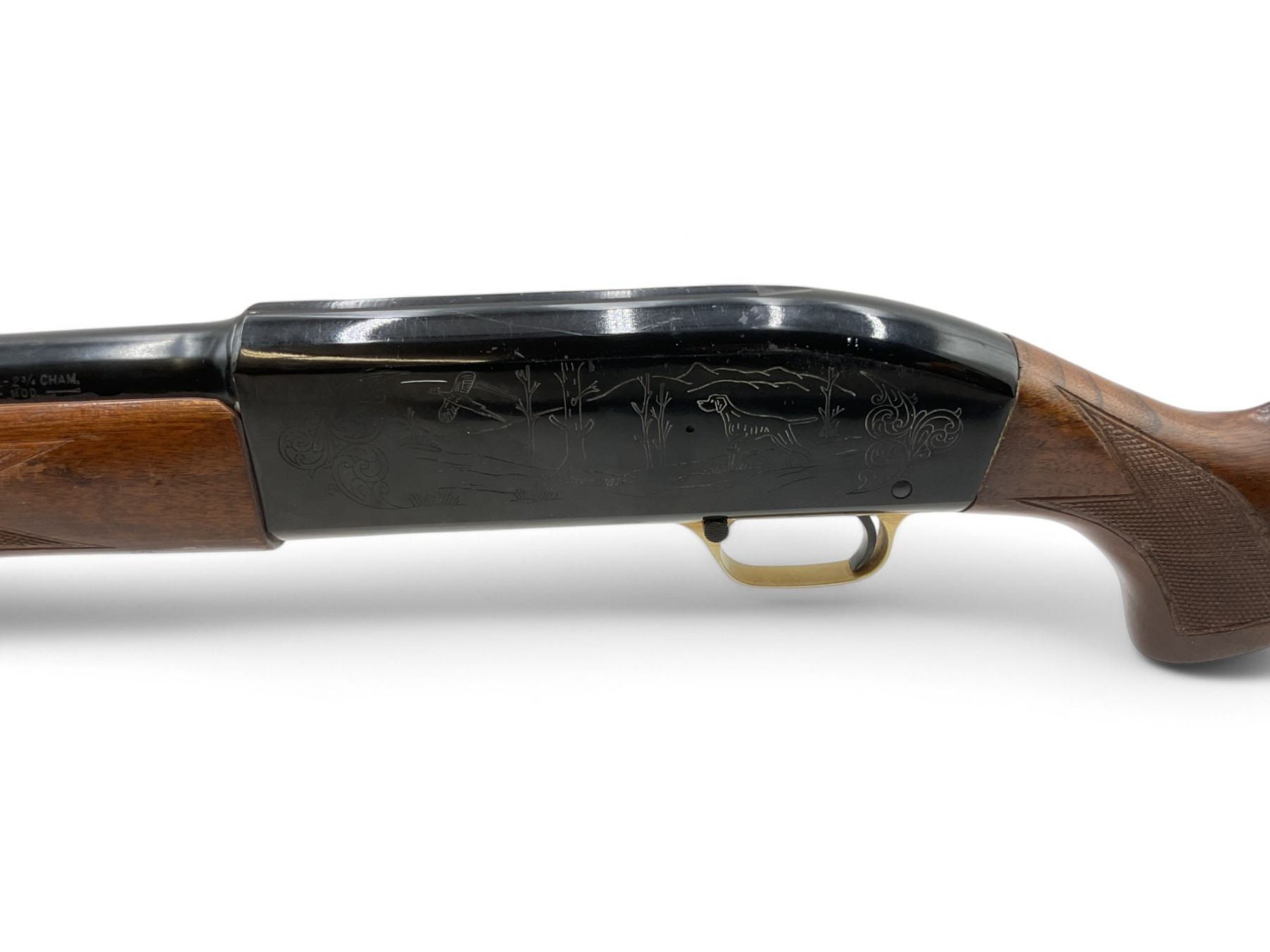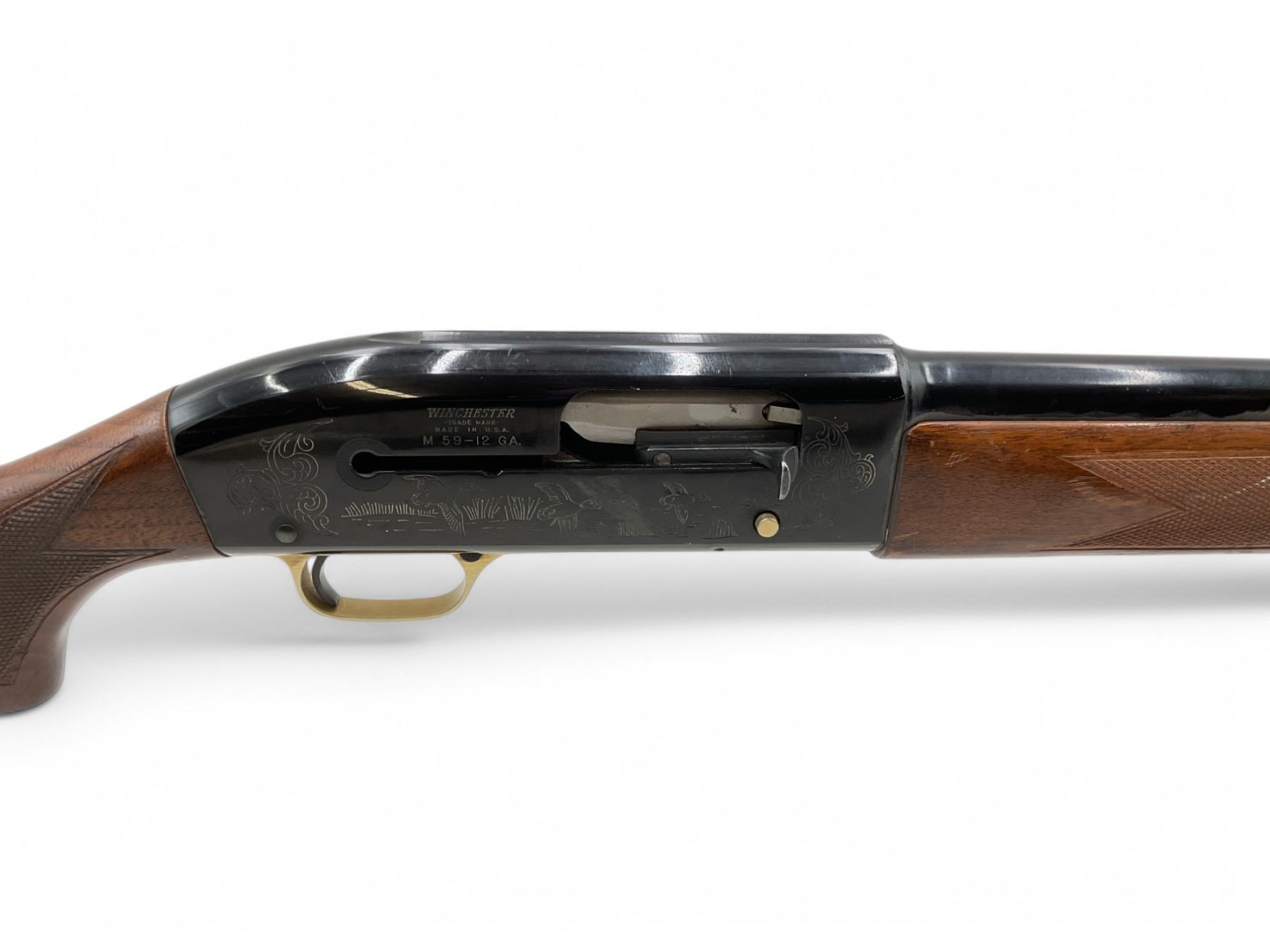Winchester Model 59 Semi Auto Shotgun 12Ga 2.75" Chamber 28" Barrel Wood Stock. Bead sight; fixed choke. Engraving on both sides of receiver. This is a non-restricted firearm.