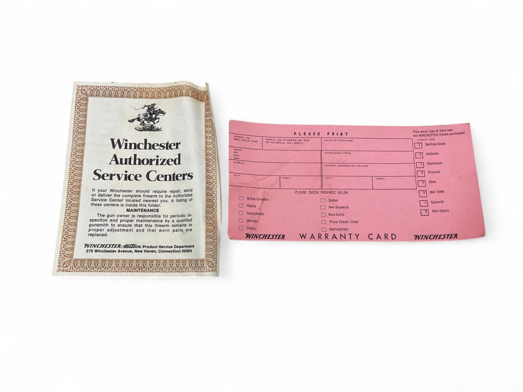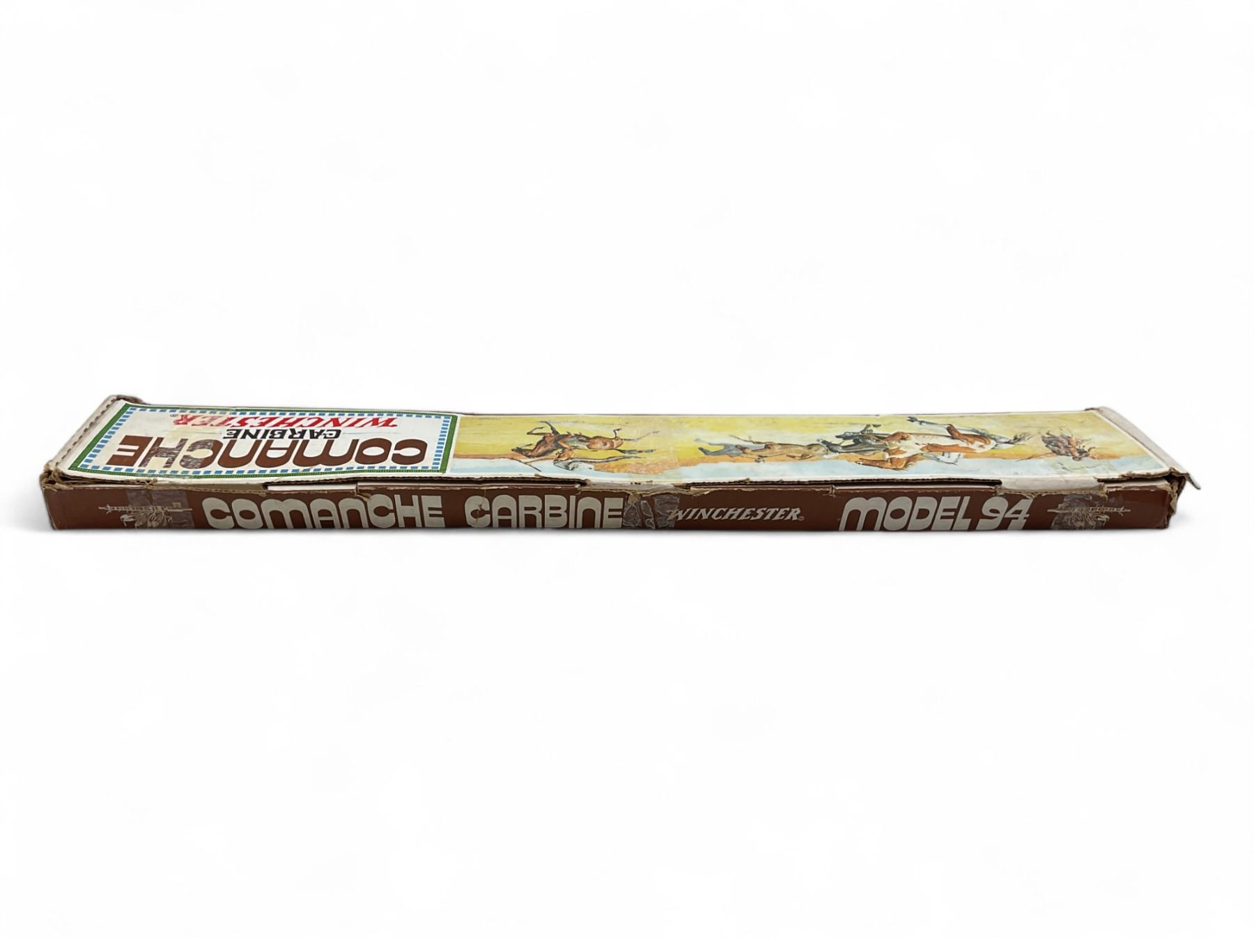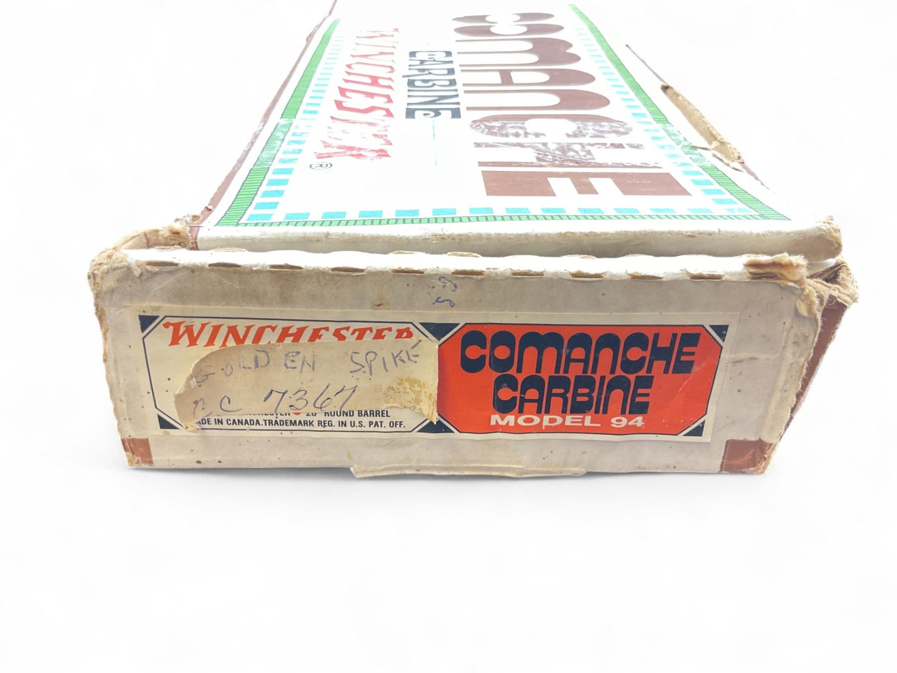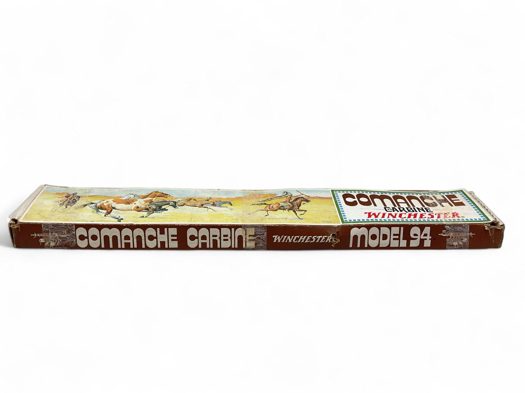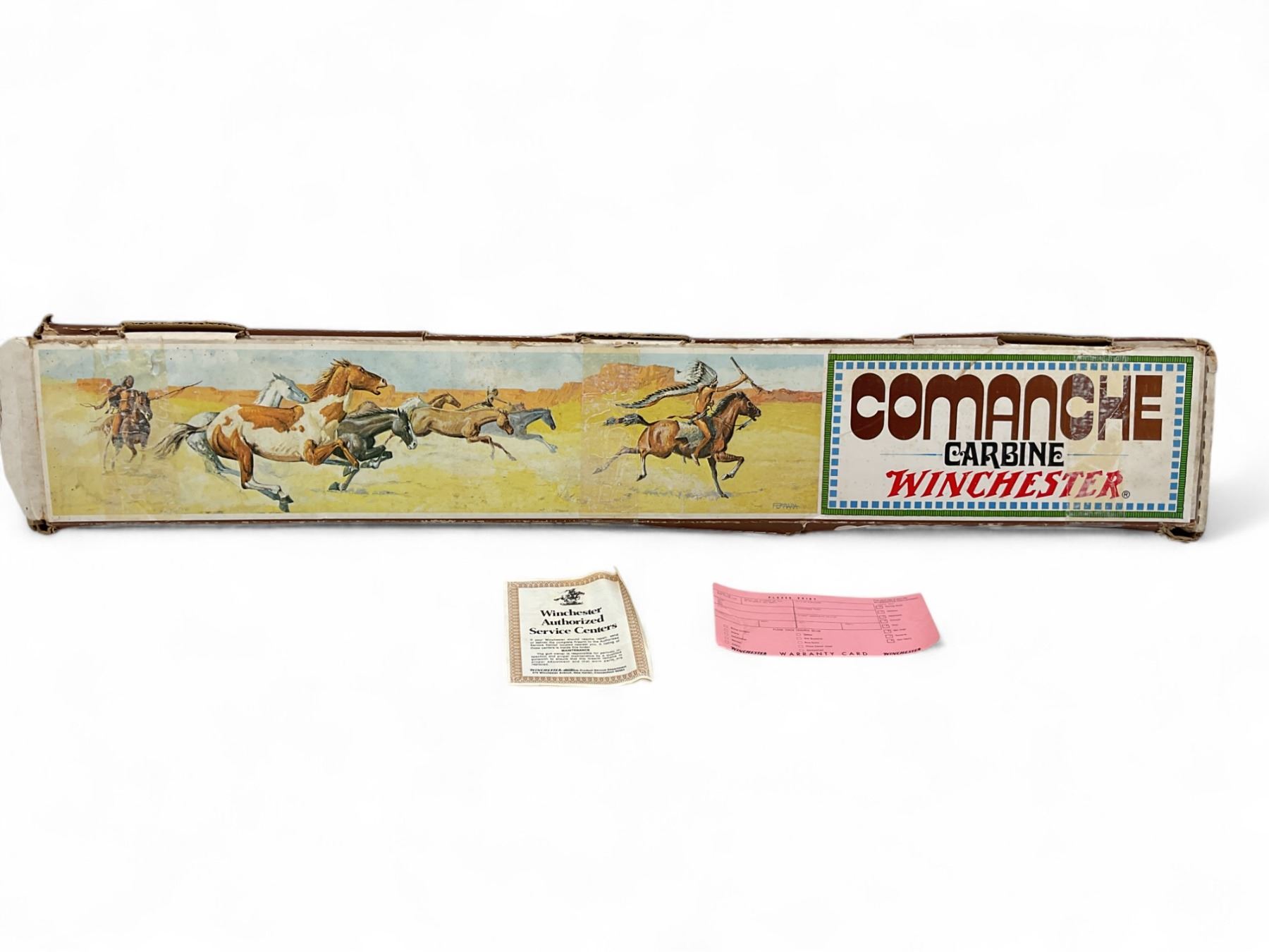 Winchester Model 94 Comanche Carbine Edition Cardboard Box Only. This is an original Winchester Comanche Carbine cardboard box; also includes original warranty card, packing papers and service center list. No firearm included.