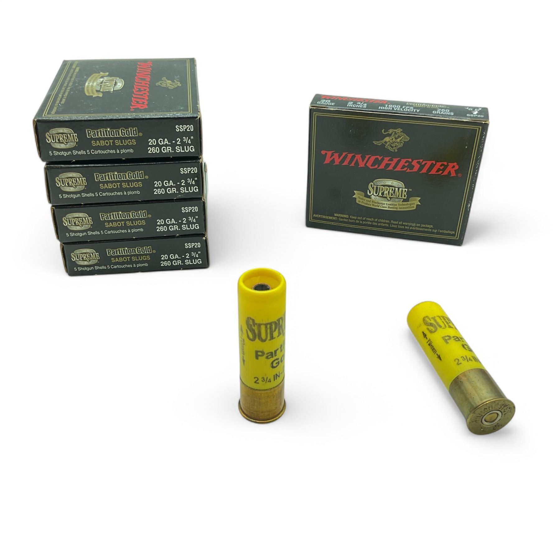 Winchester Partition Gold 20 Ga, 2-3/4  Sabot Slug Ammunition, 25 Rounds