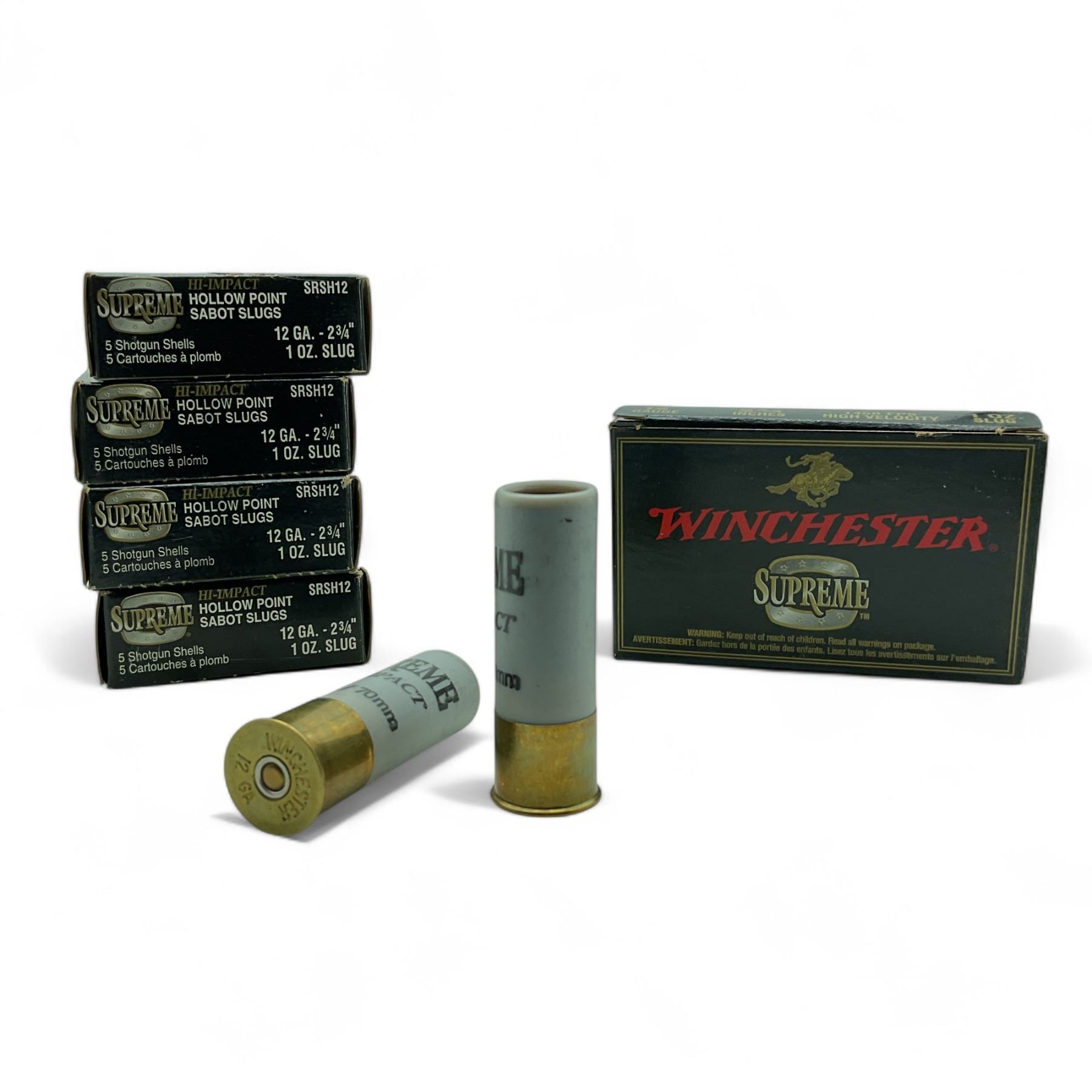 Winchester Supreme 12 Ga, 2-3/4", 1 oz Hi-Impact Hollow Point Sabot Slug Ammunition, 25 Rounds