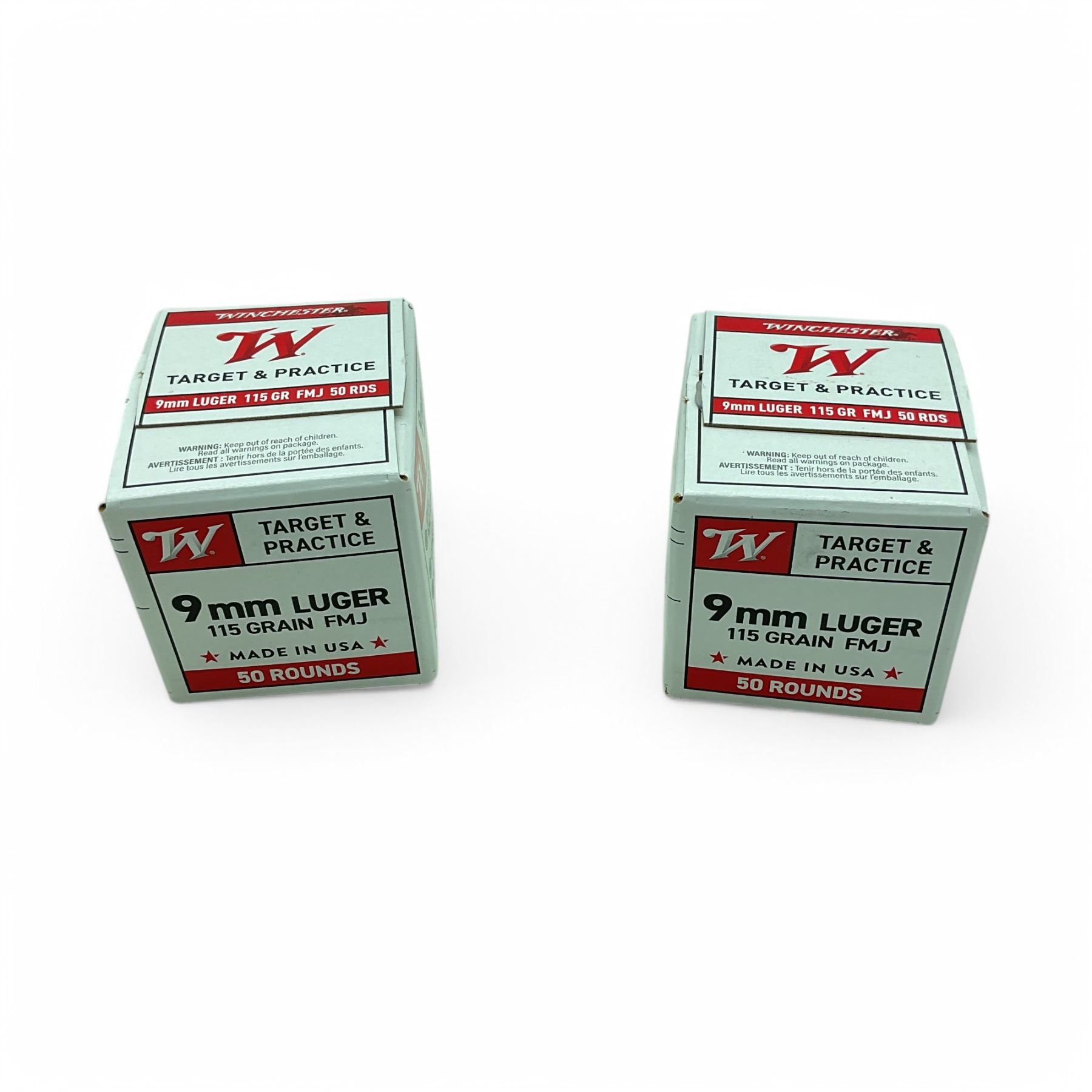 Winchester Target and Practice 9 mm 115 Grain FMJ Ammunition, 100 Rounds