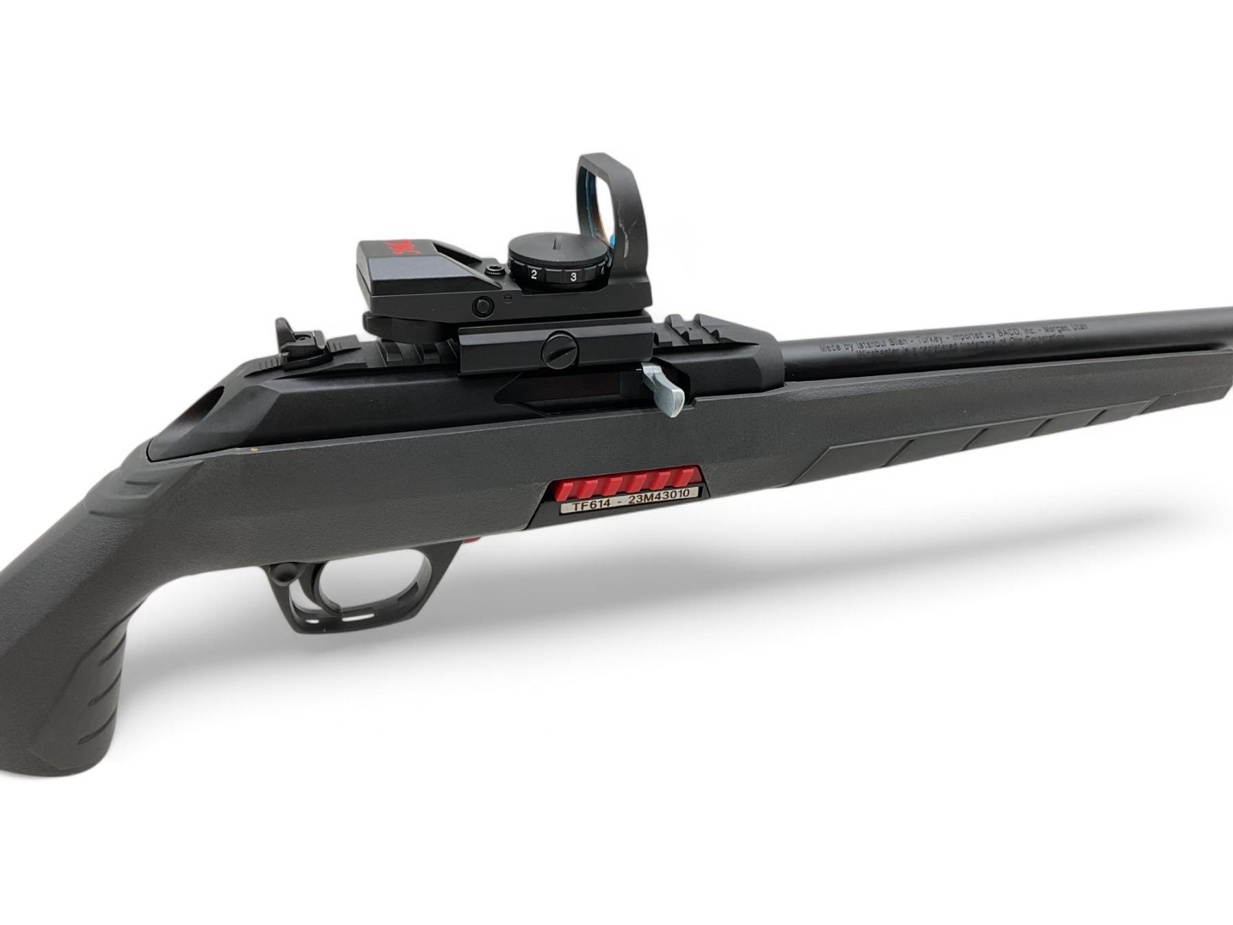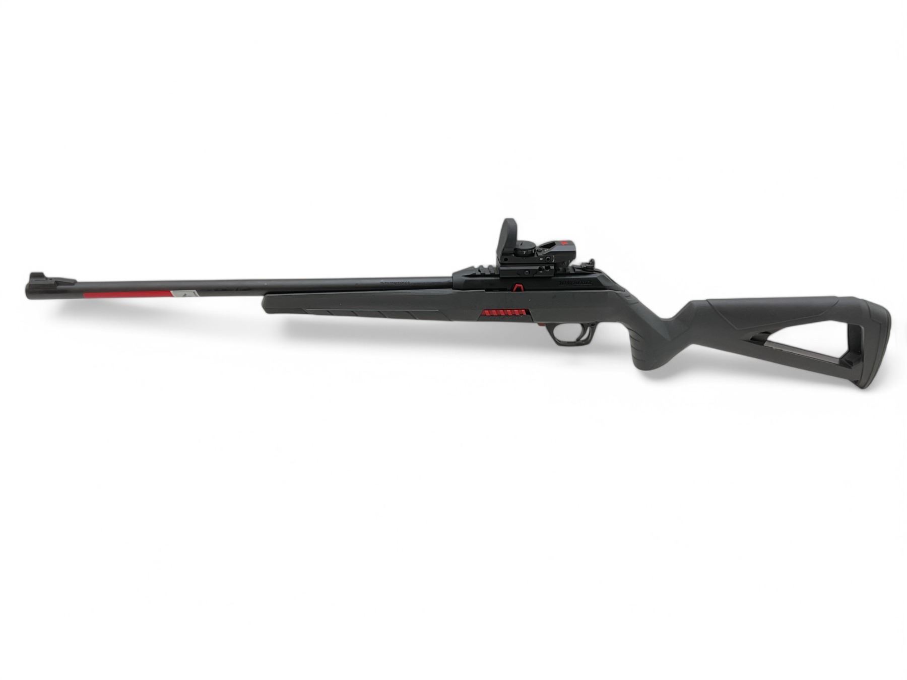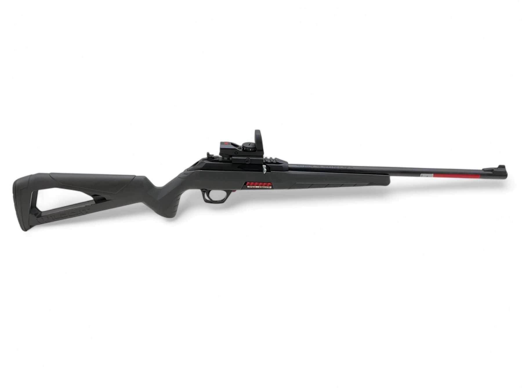 Winchester Wildcat Semi-Auto Rifle 22 LR 18" Barrel Grey And Black With Reflex Optic, New. Rail mounted on receiver, factory open sights. Detachable magazine. This is a non-restricted firearm.