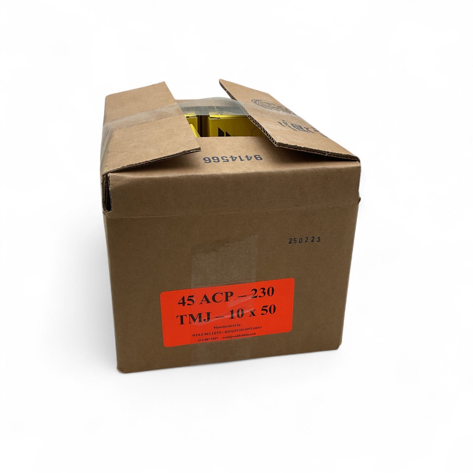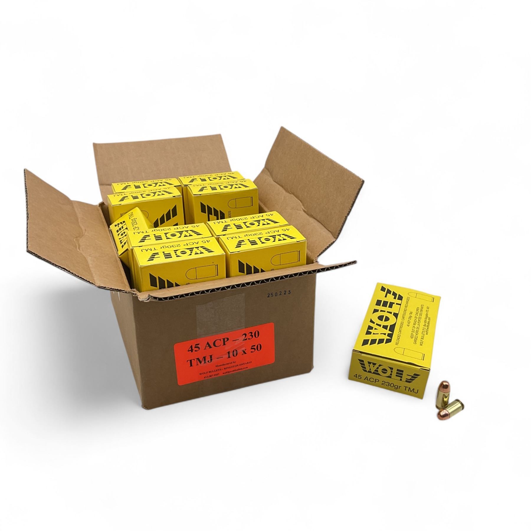 Wolf 45 ACP 230 Grain TMJ Ammunition, 500 Round Case