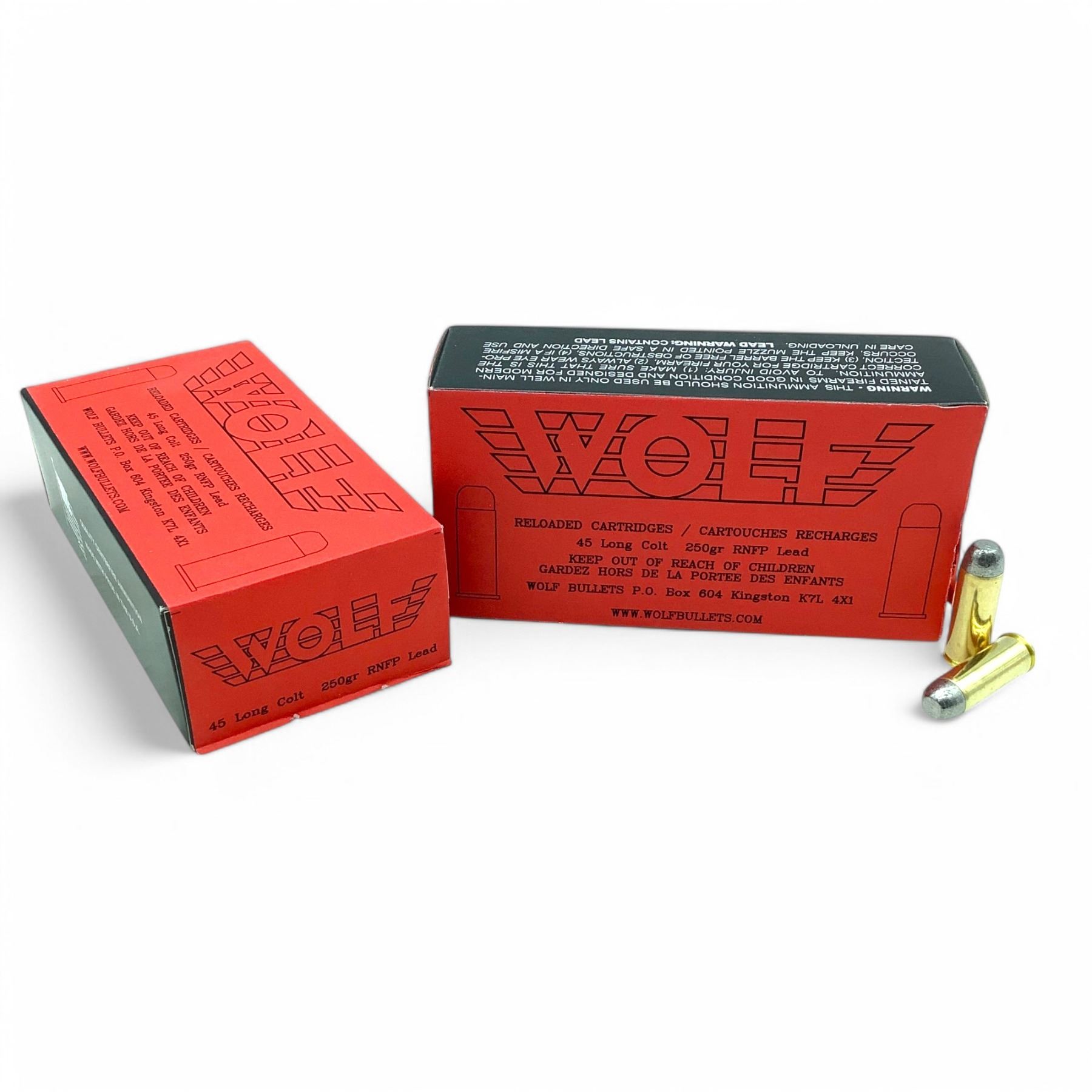 Wolf 45 LC 250 Grain RNFP Lead Ammunition, 100 Rounds