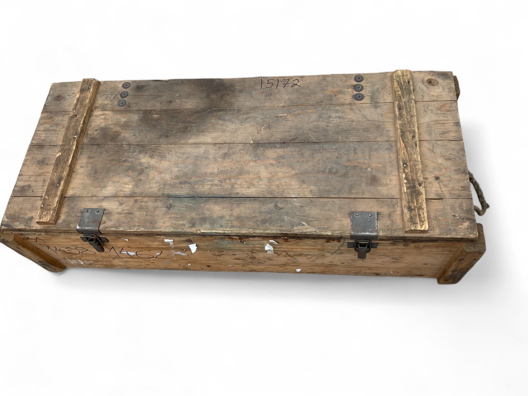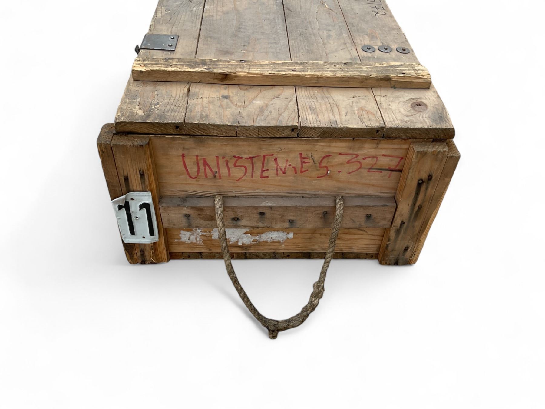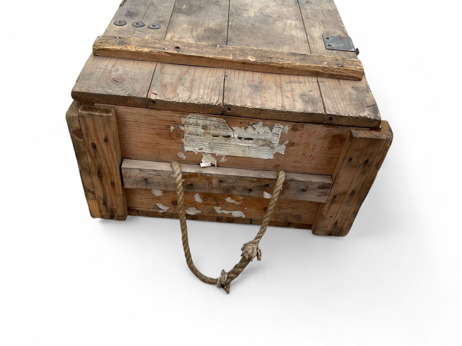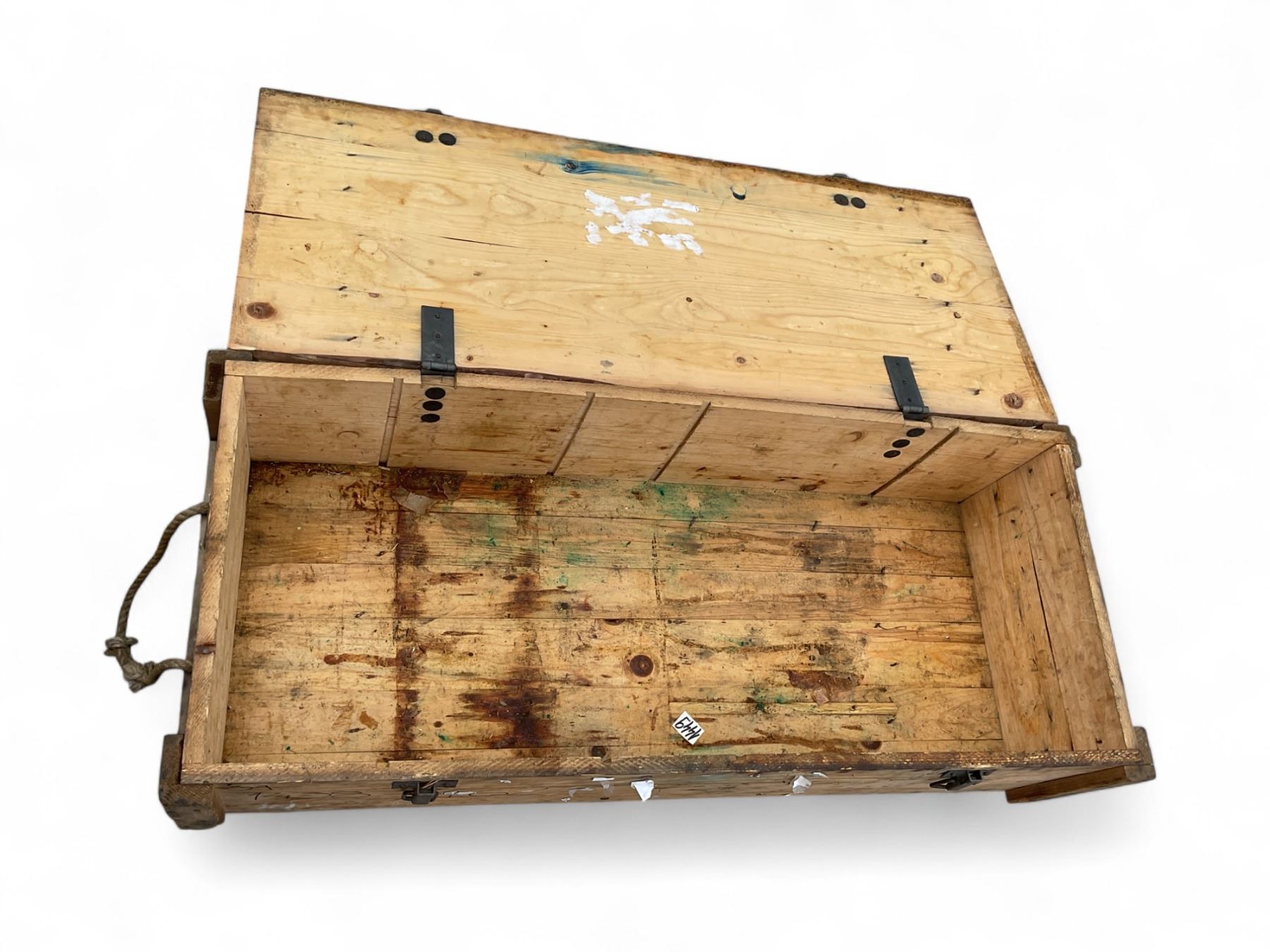 Wooden Crate 46.5" Wide X 19" Deep X 13" High With 2 Latches And Rope Handles.