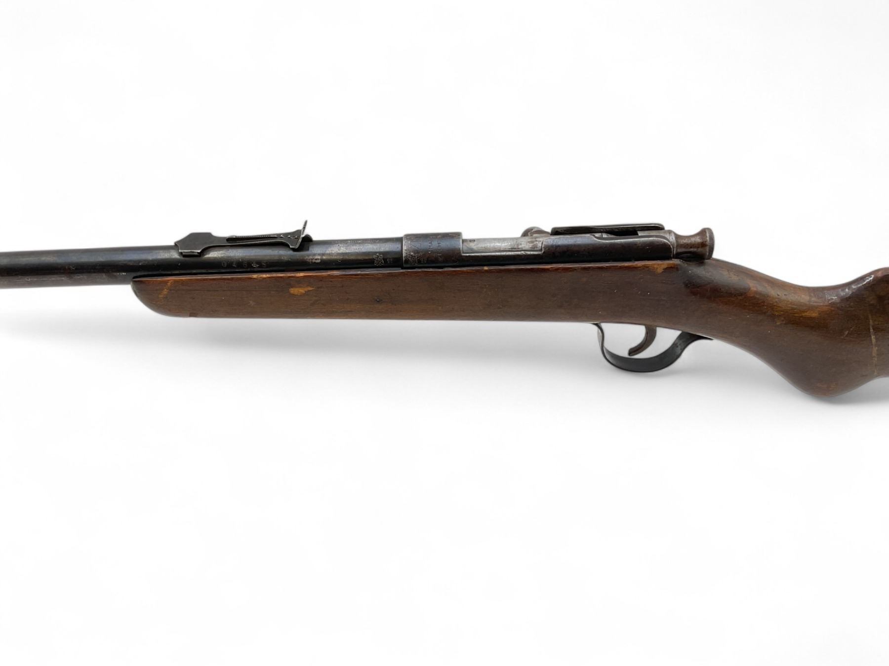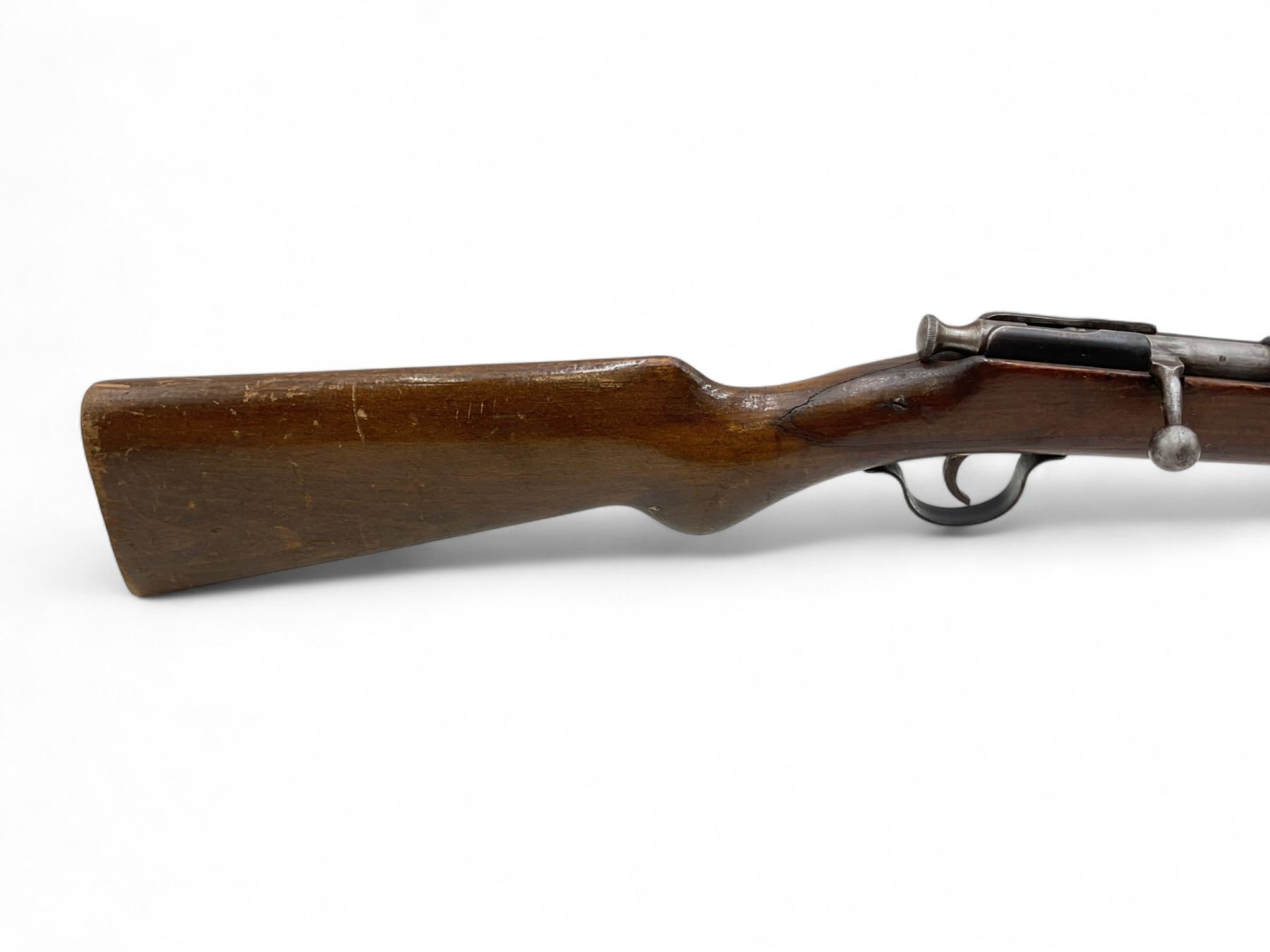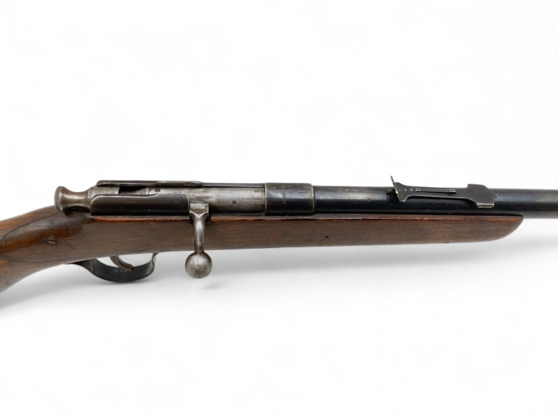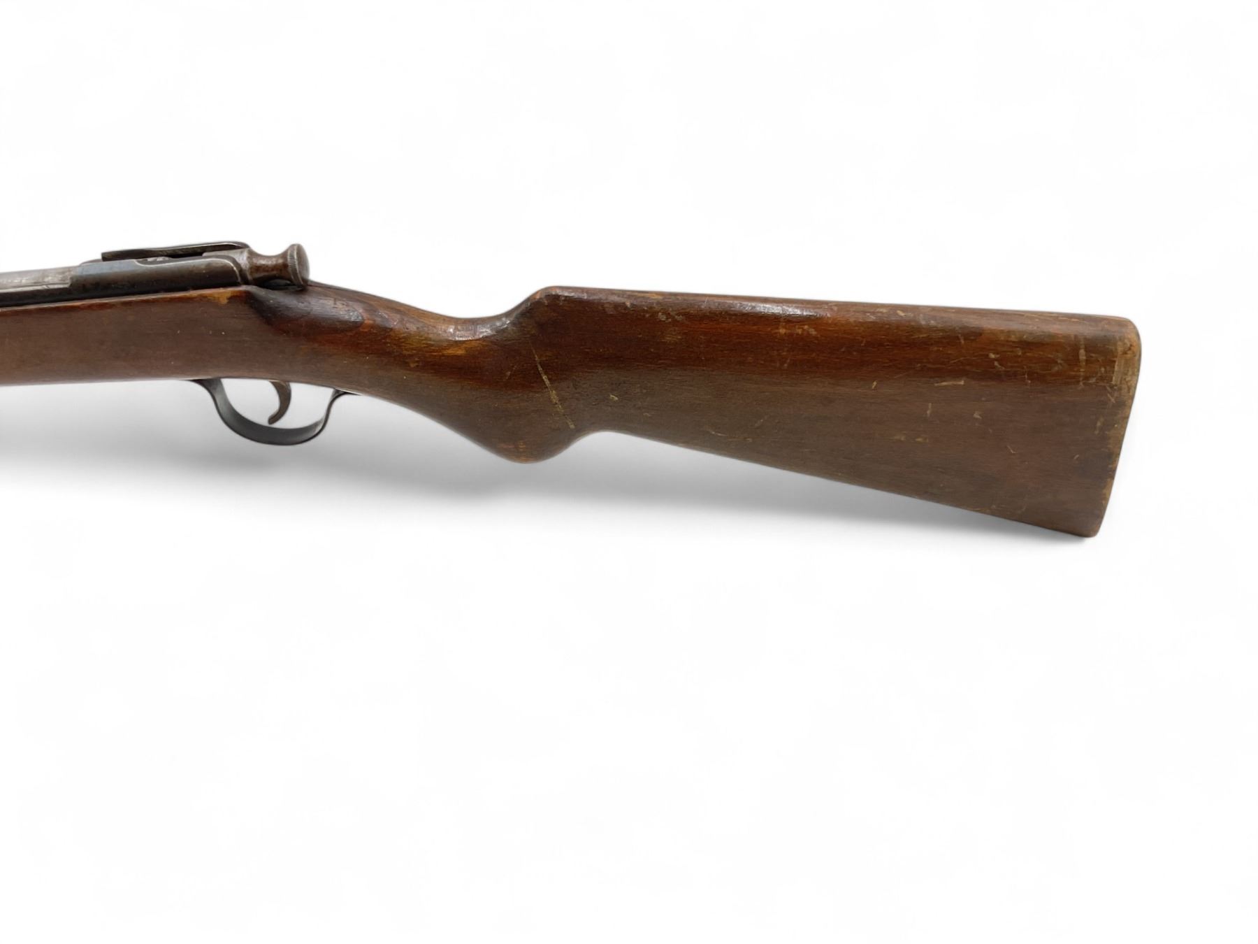 ZM1 Single Shot Bolt Action Rifle .22LR 24" Barrel Wood Stock. Fixed front sight, adjustable rear sight. Stock is cracked behind receiver. This is a non-restricted firearm.
