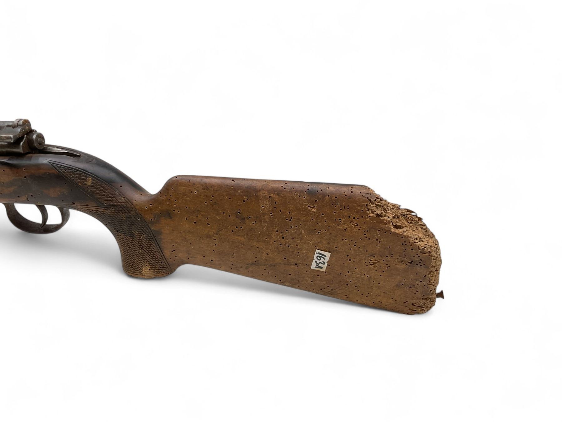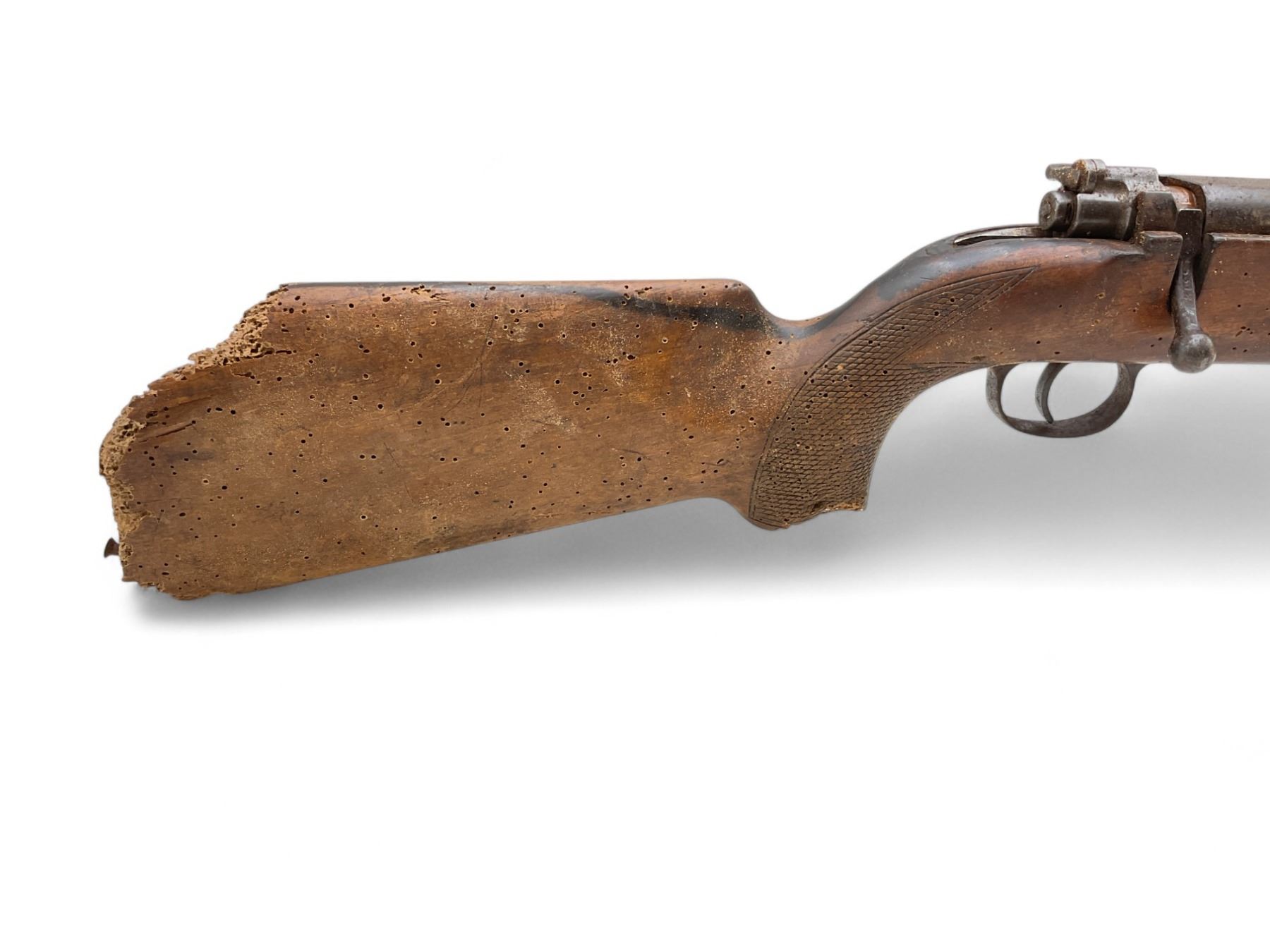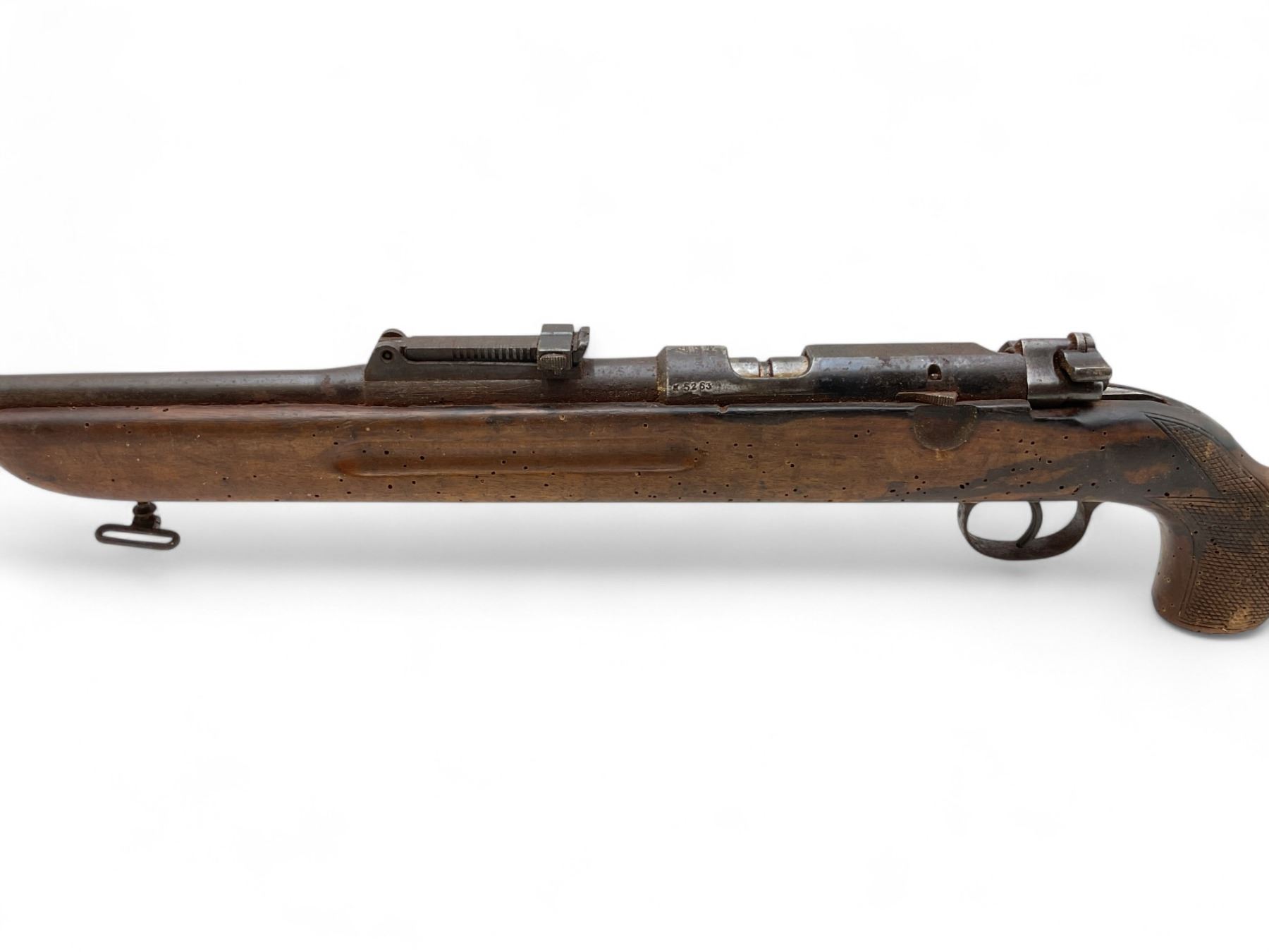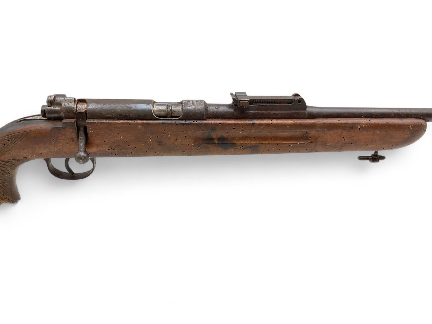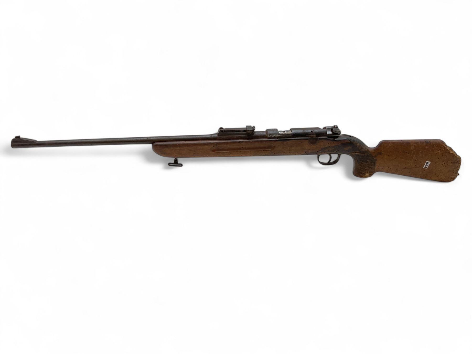 Zastava M56 Trainer Single Shot Rifle .22LR 24" Barrel Broken Wood Stock. Fixed front sight, adjustable rear sight. Rust present through out firearm. Rear stock broken and missing entire section; appears to be disintegrating. This is a non-restricted firearm.