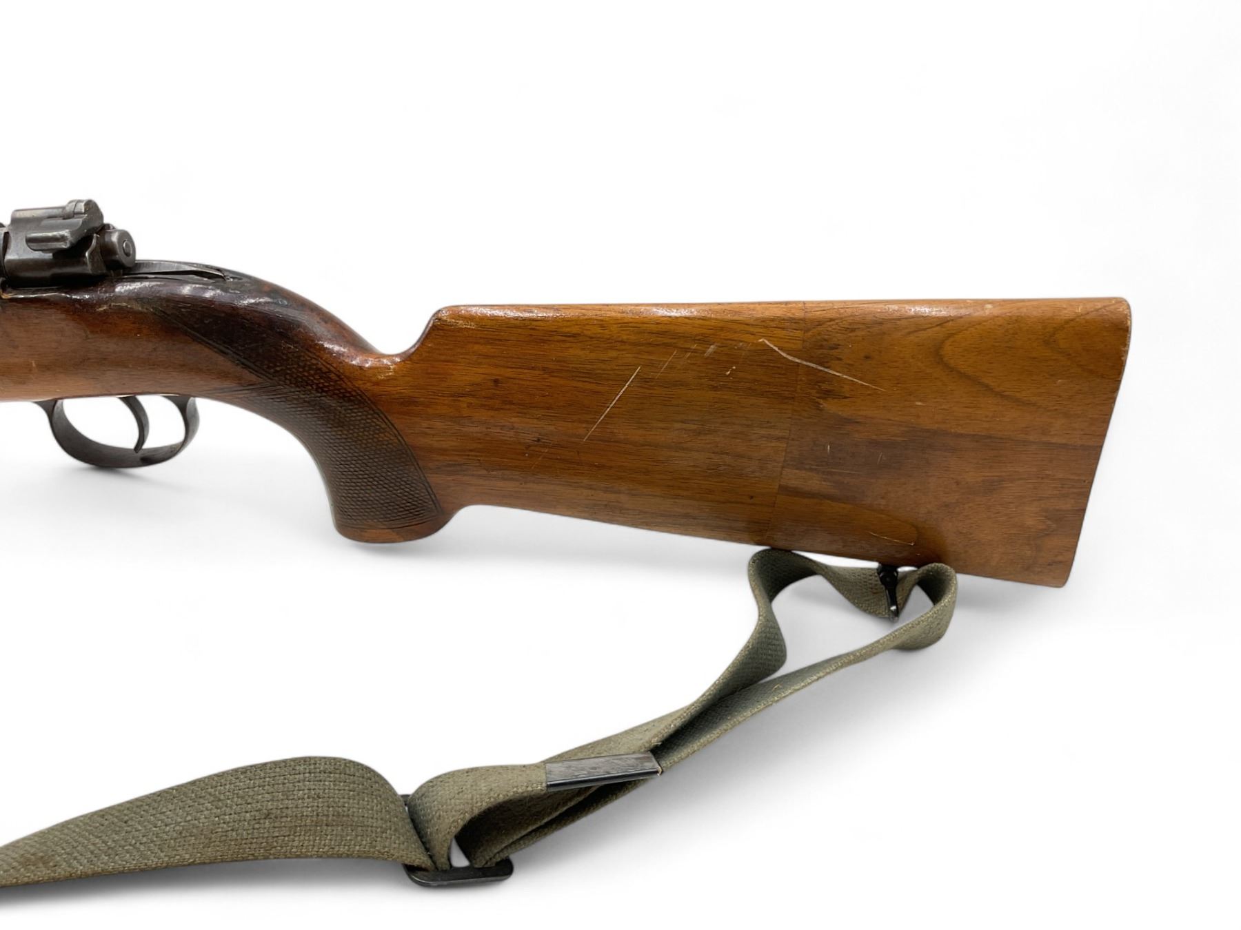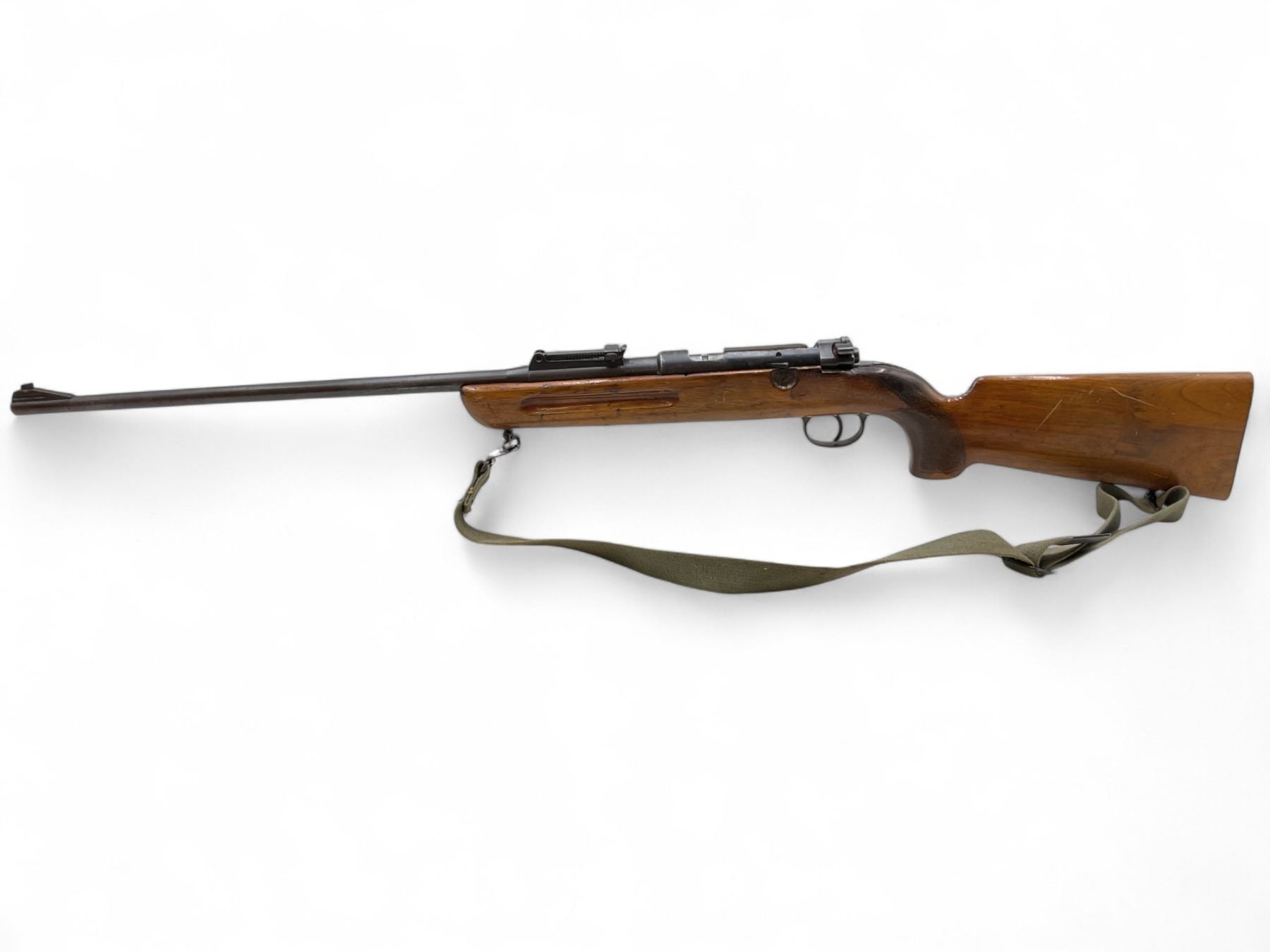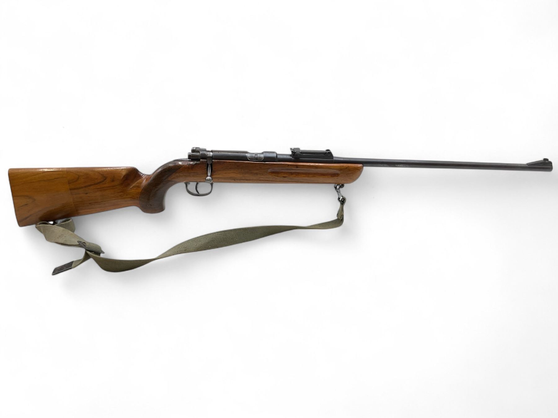 Zastava M56 Trainer Single Shot Rifle .22LR 24" Barrel Wood Stock. Fixed front sight, adjustable rear sight. Stock appears to have been replaced with one that includes a mag well. Rear stock has had a section added. Comes with a sling. This is a non-restricted firearm.