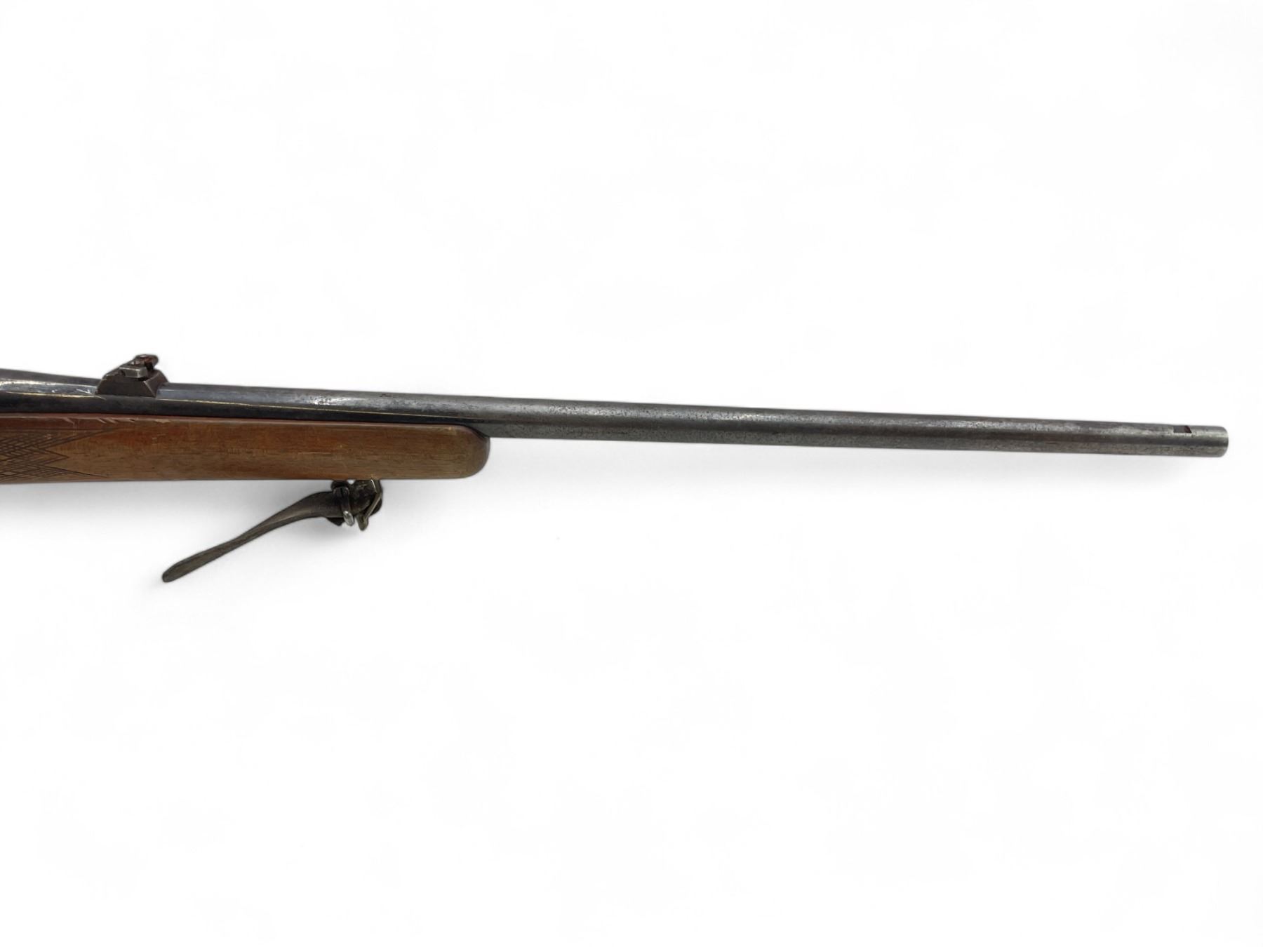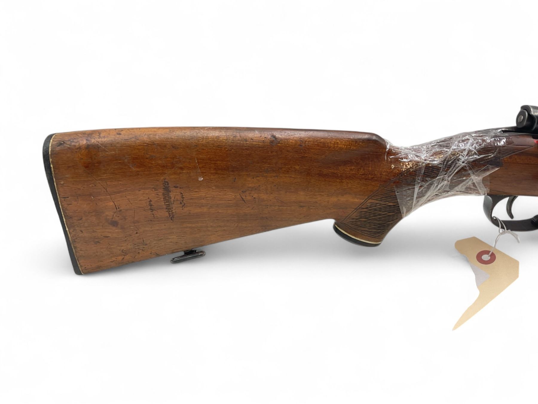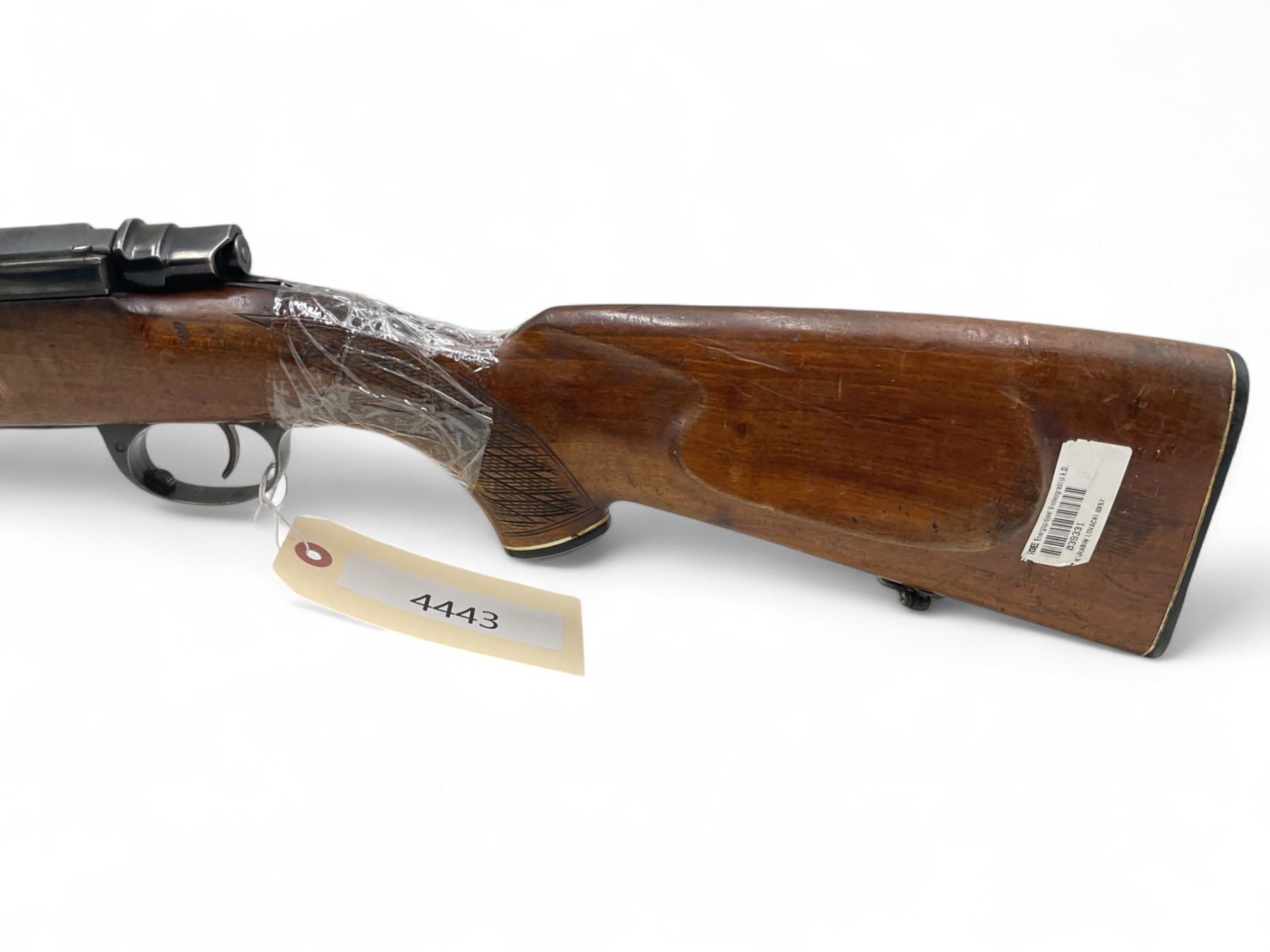 Zastava Mauser Bolt Action Rifle 8X57JS 24" Barrel Wood Stock. Internal magazine with hinged base plate; magazine follower bent and missing section which prevents bolt from cycling. No front sight present; flip up rear sight. Rear stock has substantial crack at receiver and has been taped. This is a non-restricted firearm.